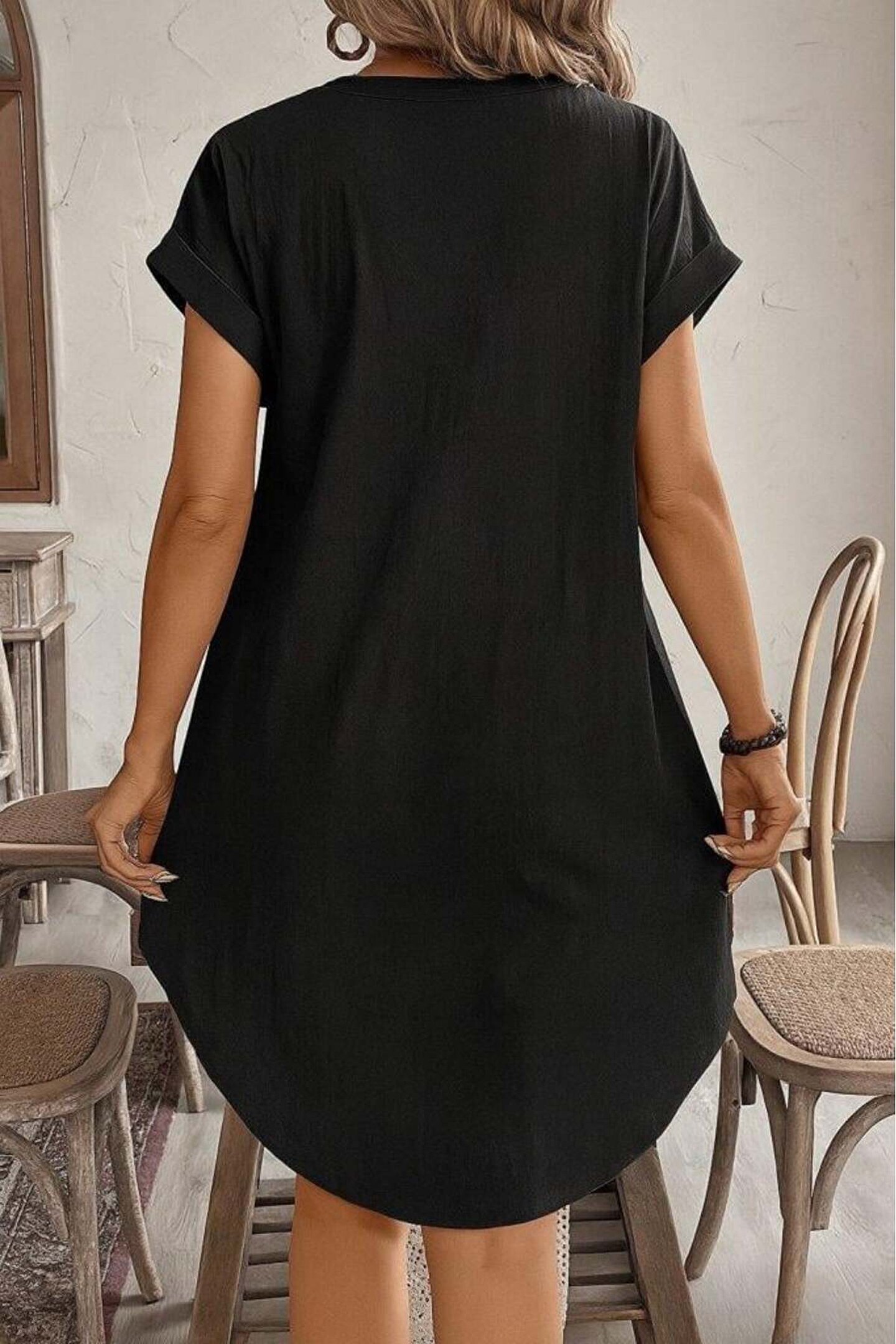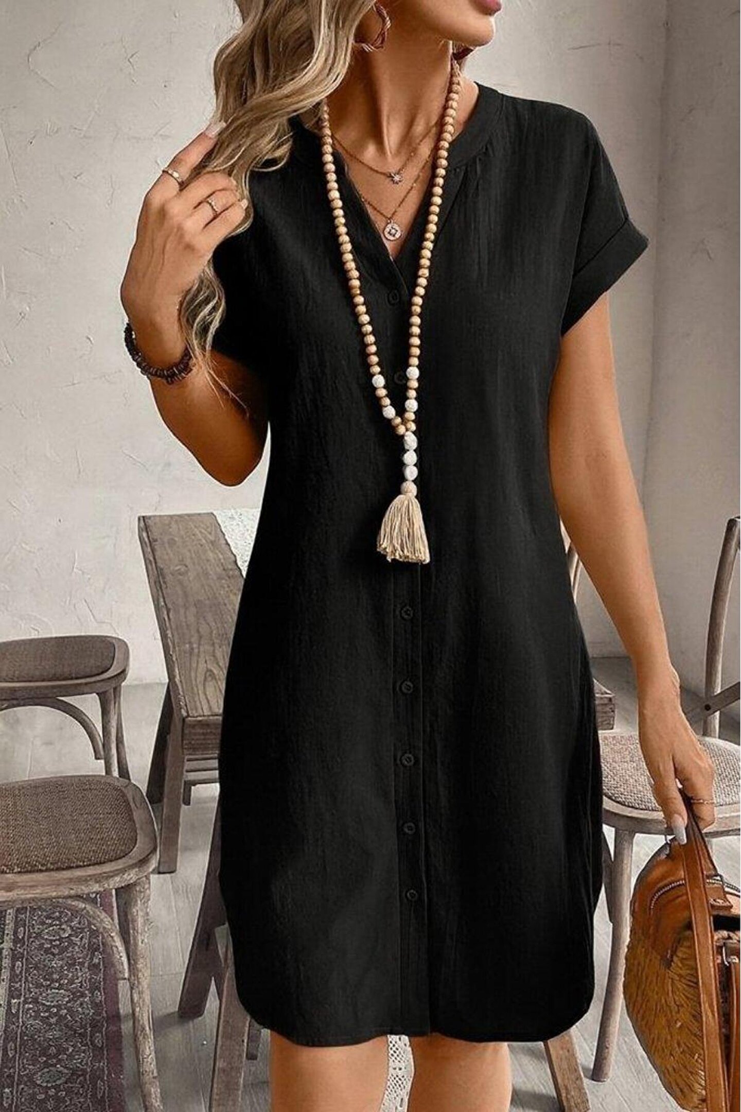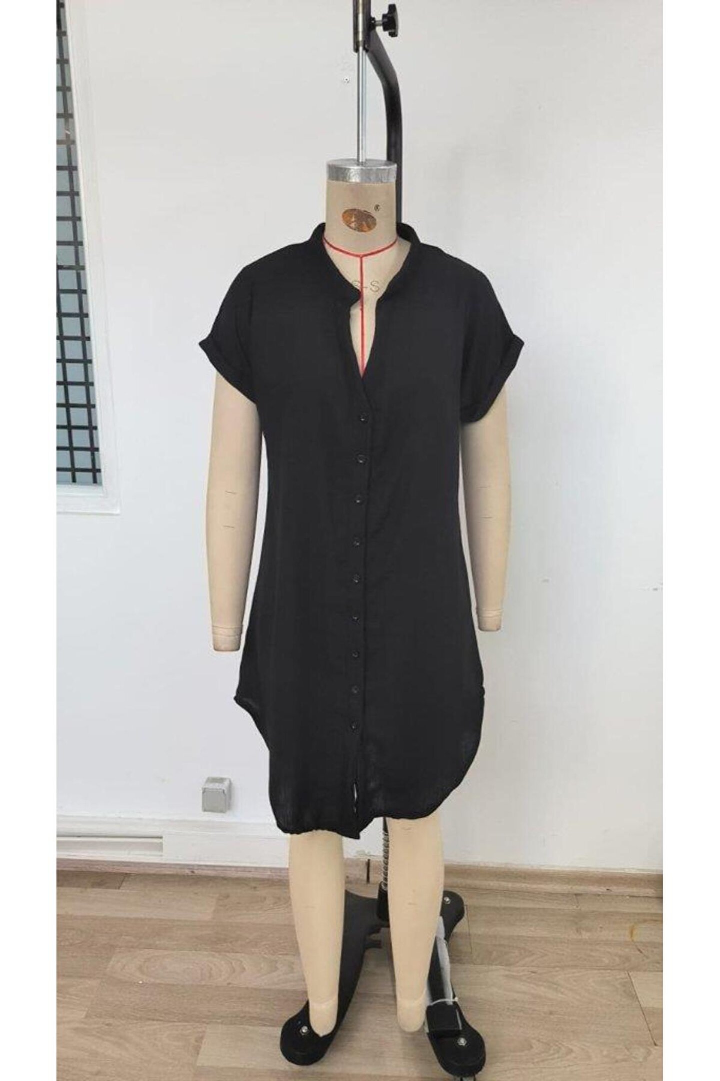 Kadın Kısa Kollu önden Düğmeli Ithal Keten Elbise
