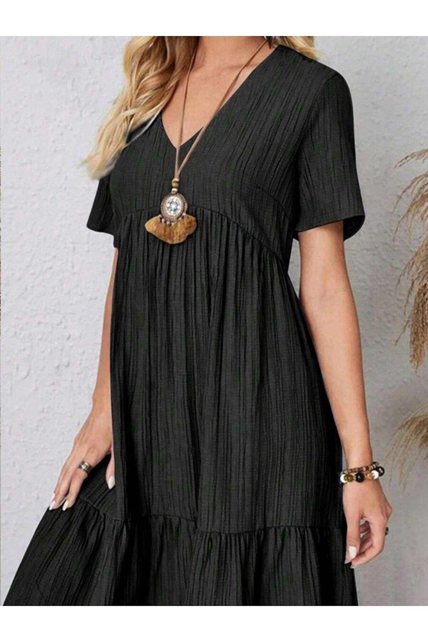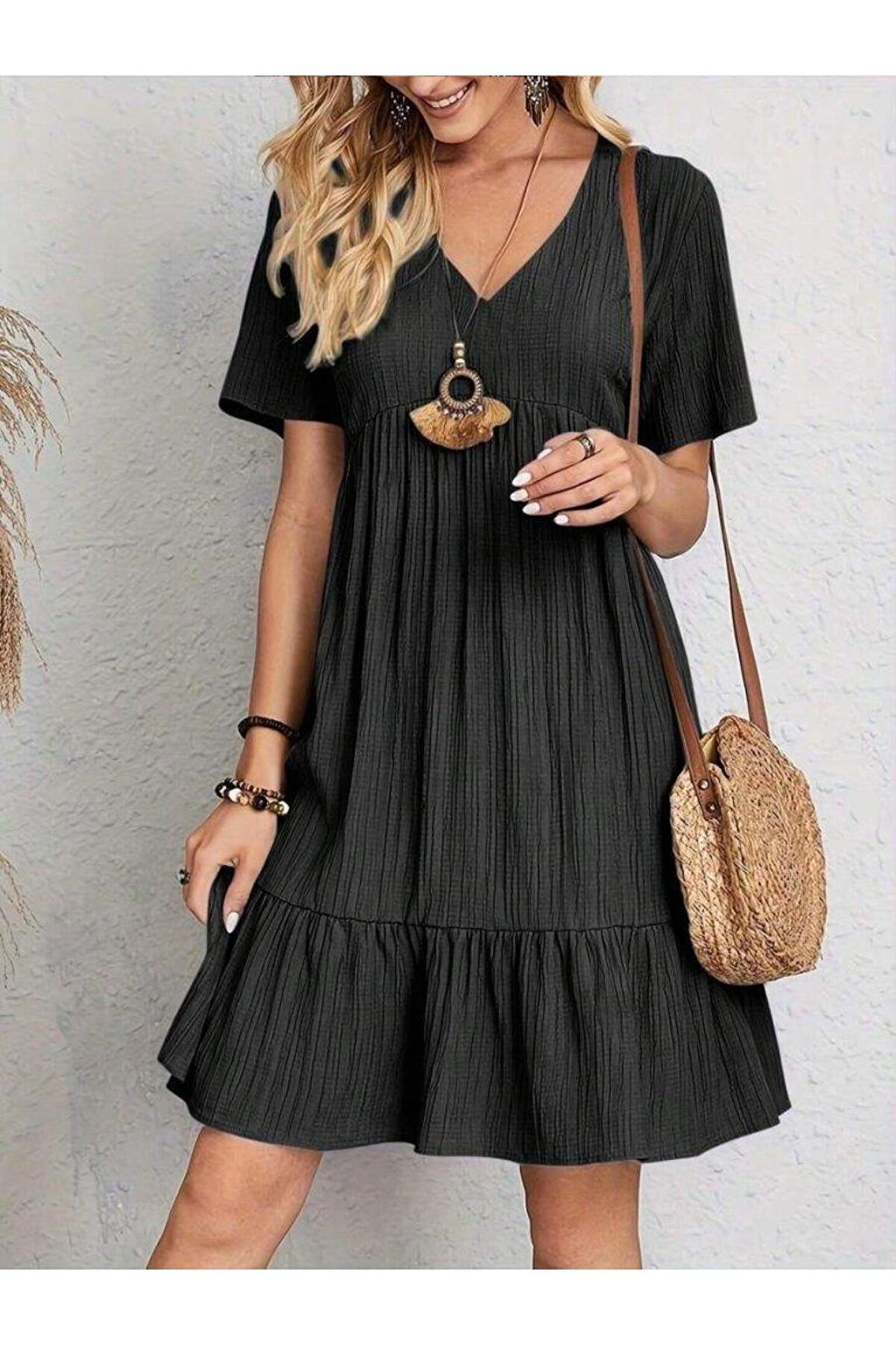 HAZEGO Kadın Kısa Kollu V Yakalı Fırfırlı Bürümcük Elbise