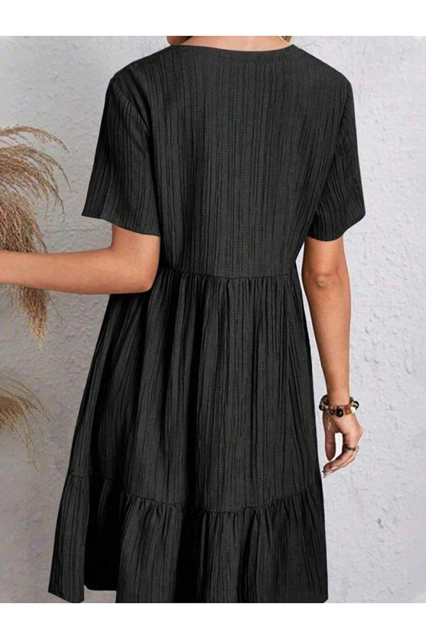 Kadın Kısa Kollu V Yakalı Fırfırlı Bürümcük Elbise