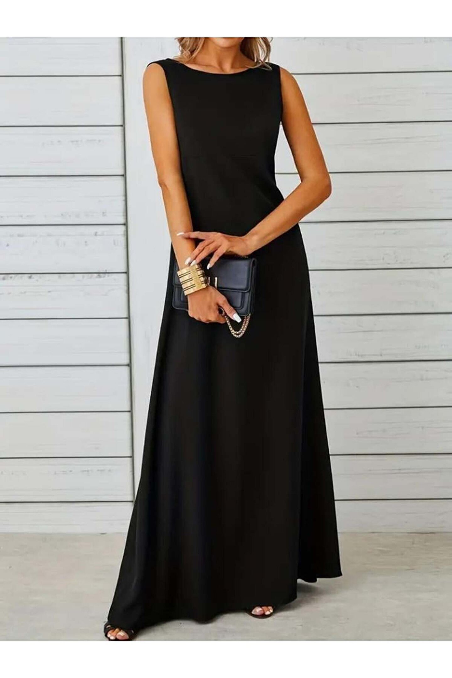 Kadın Kolsuz Kayık Yaka Maksi Janjan Krep Elbise