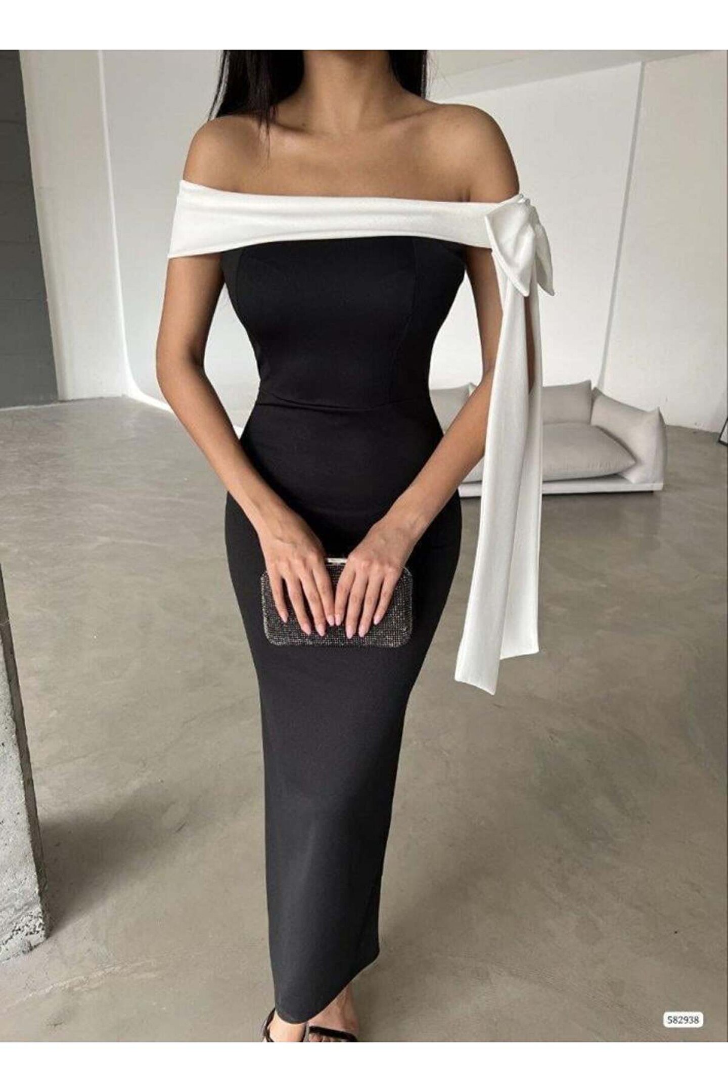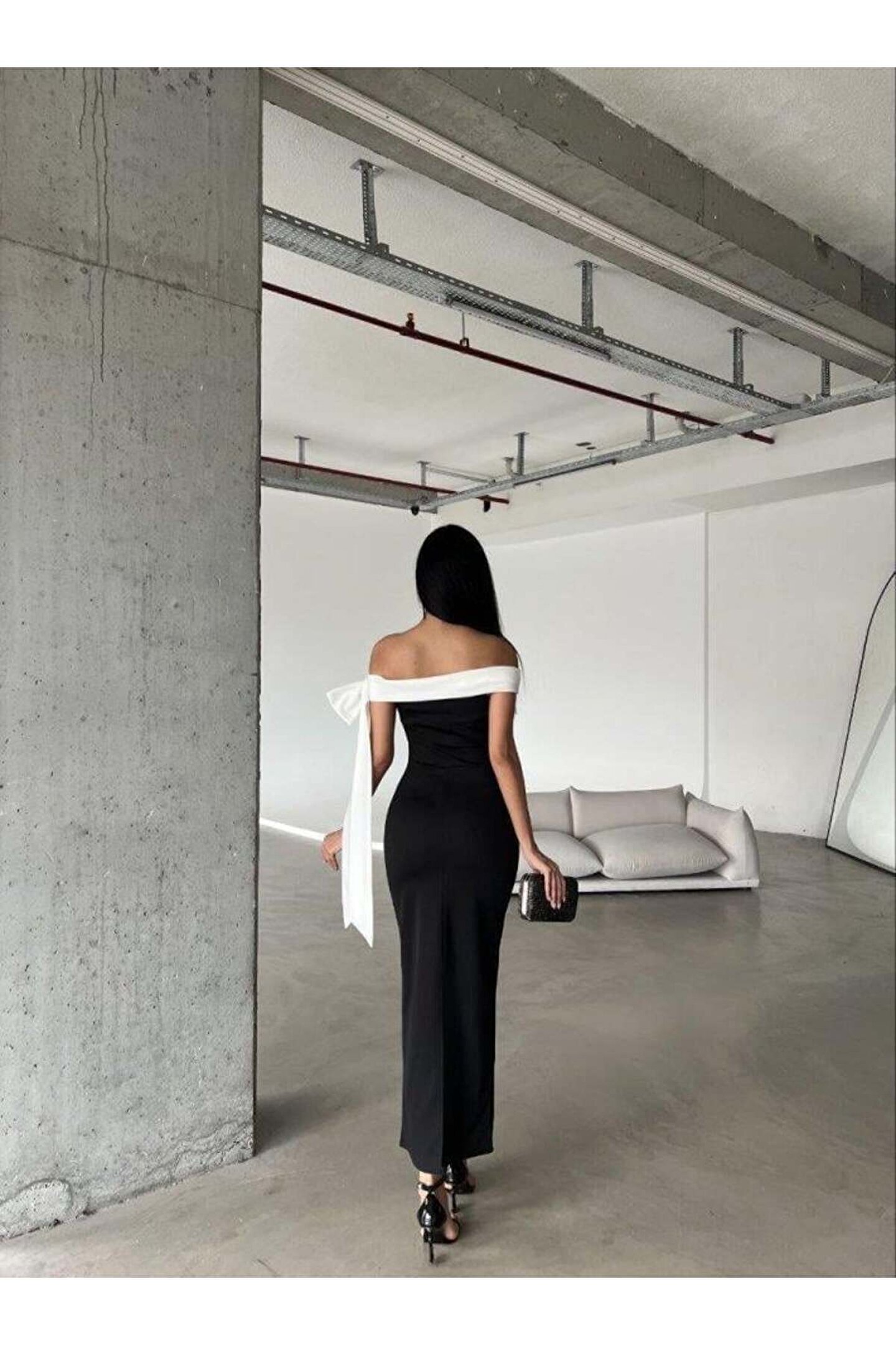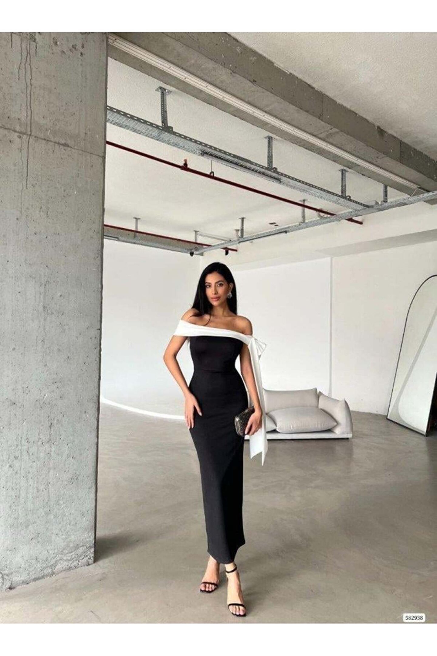 HAZEGO Kadın Madonna Yaka Skuba Krep Kumaş Kurdale Detay Elbise