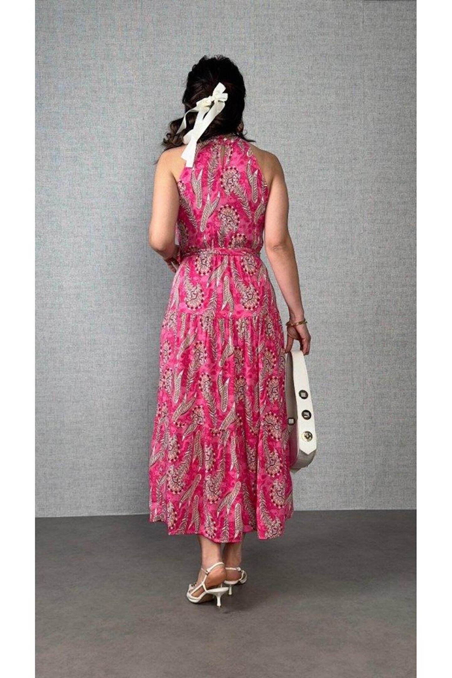Kadın Omuzlardan Açık Boyundan Geçmeli Desenli Süprem Bluz
