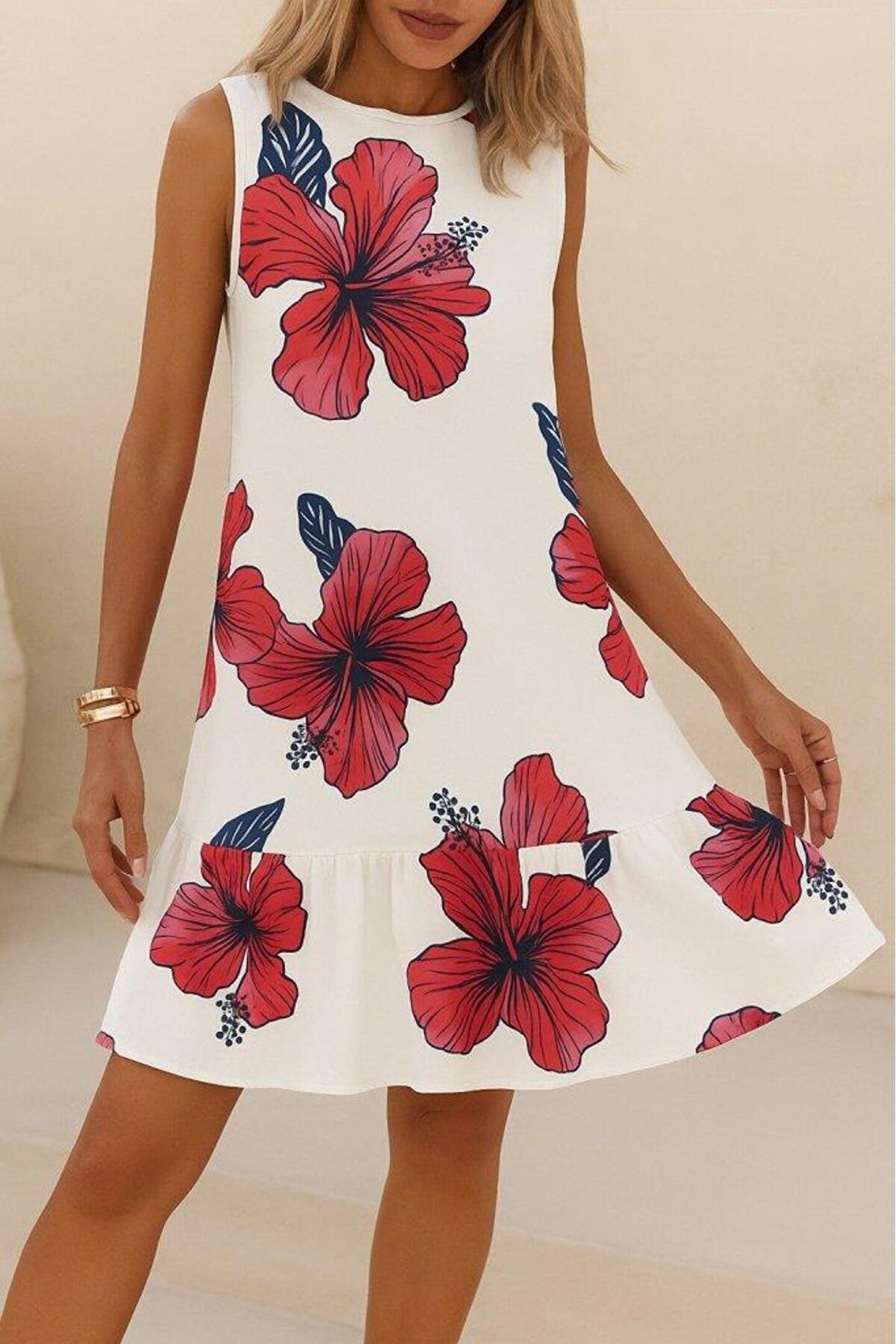 HAZEGO Kadın Sıfır Kol Sırttan Bağlamalı Fırfırlı çiçek Desenli Süprem Elbise