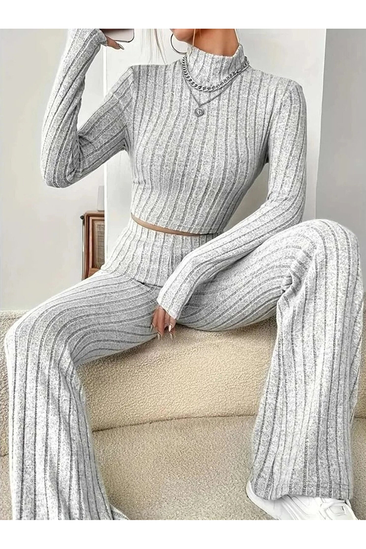 HAZEGO Kadın Uzun Kollu Balıkçı Yaka Krop Ve Pantolon şardonlu Kaşkorse Ikili Takım