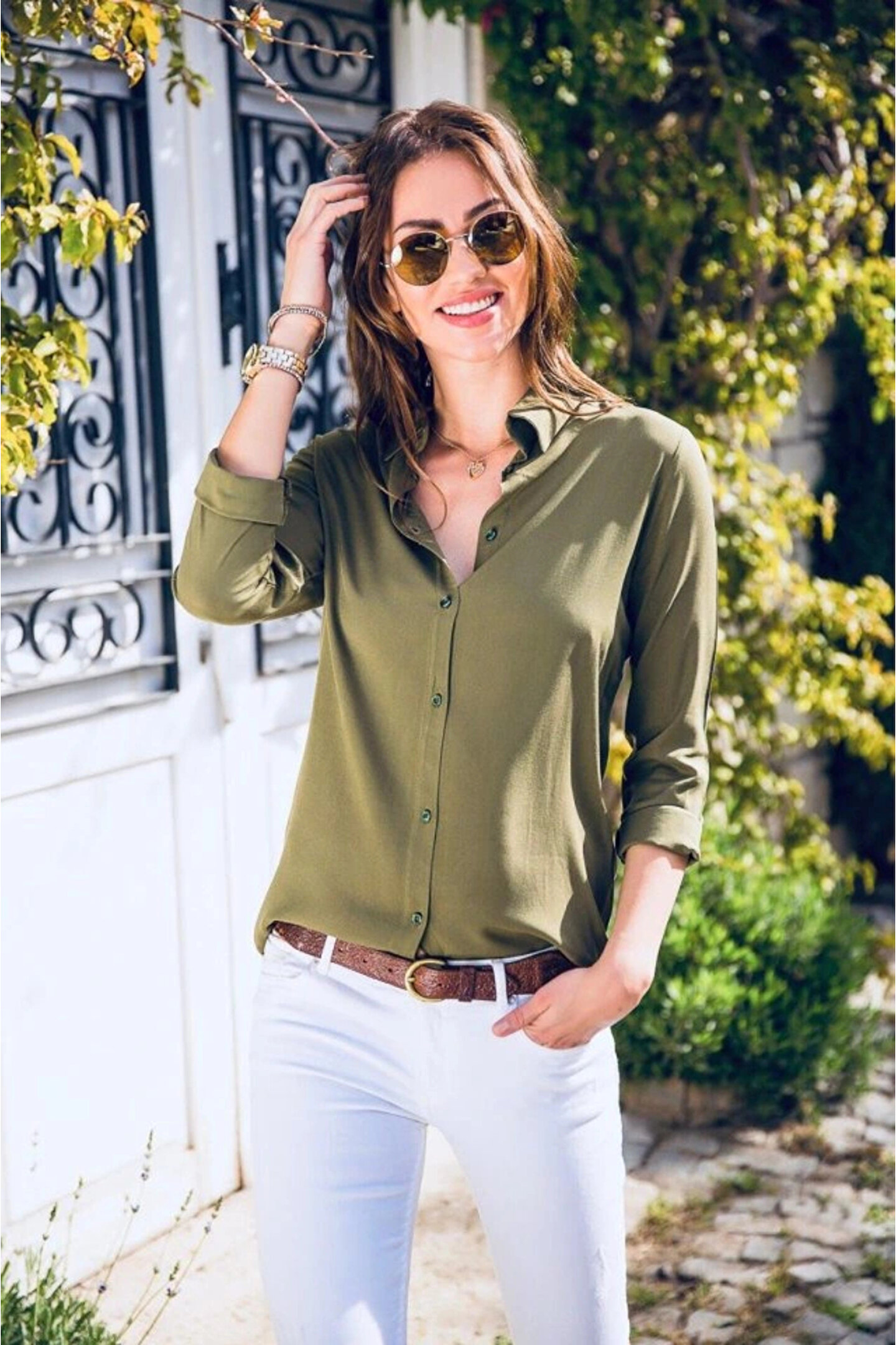 Kadın Uzun Kollu Dokuma Kumaş Klasik Gömlek