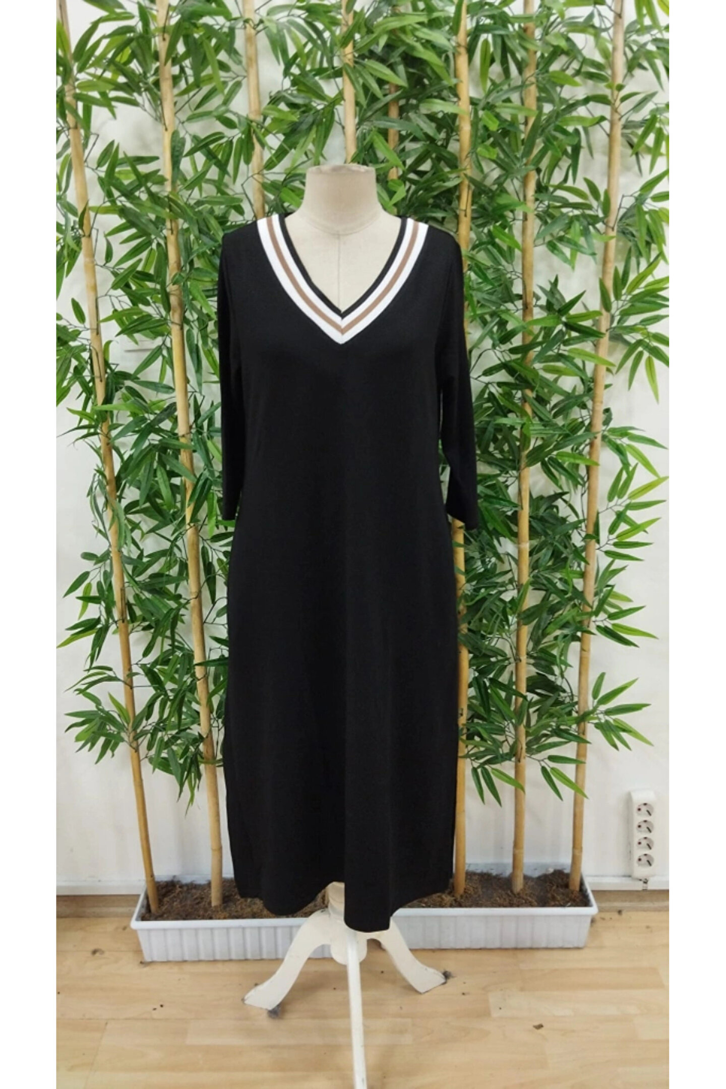 Kadın Uzun Kollu V şerit Yakalı Viskon Iki Iplik Elbise
