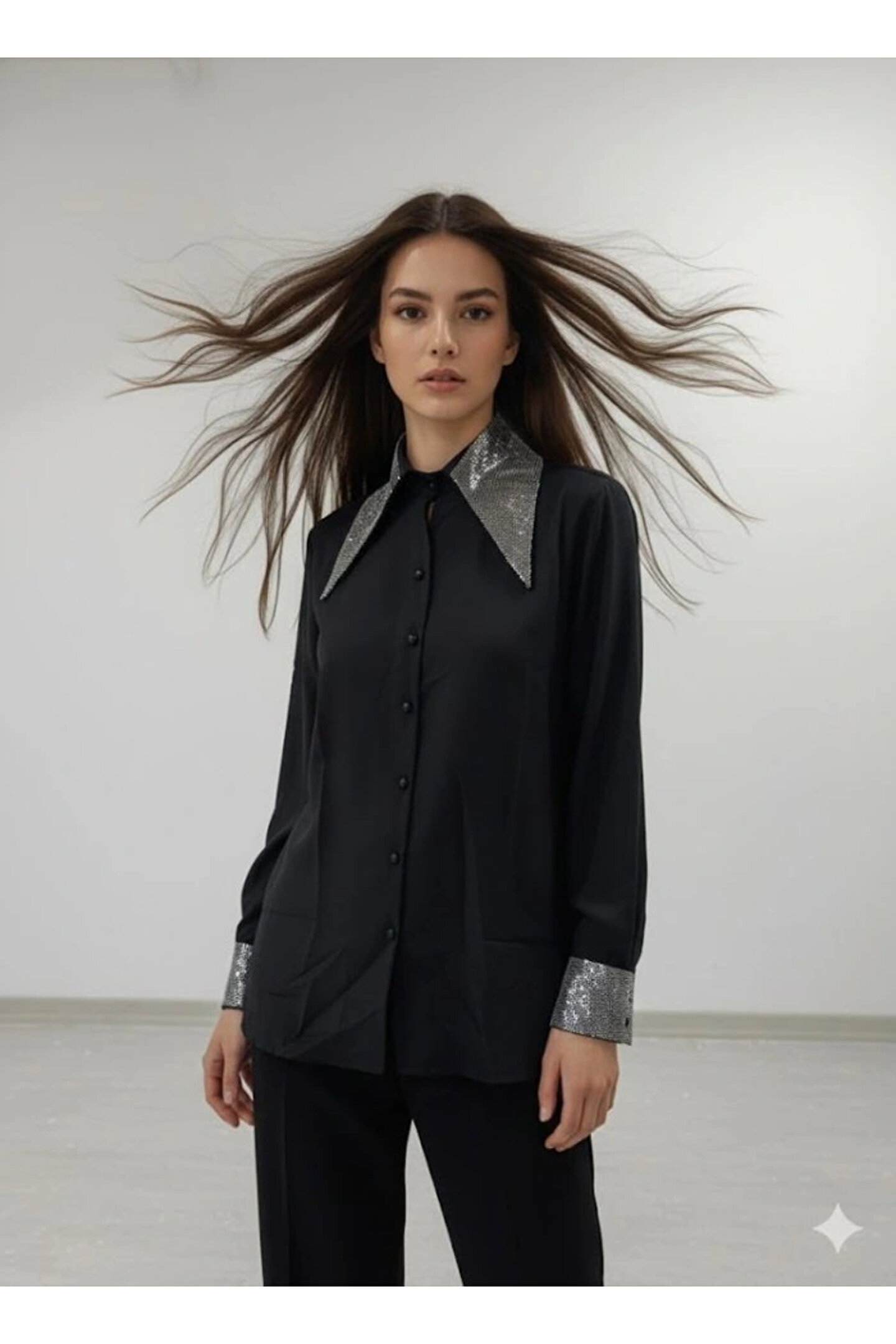 Kadın Uzun Kollu Yaka Ve Manşet Detay Gömlek