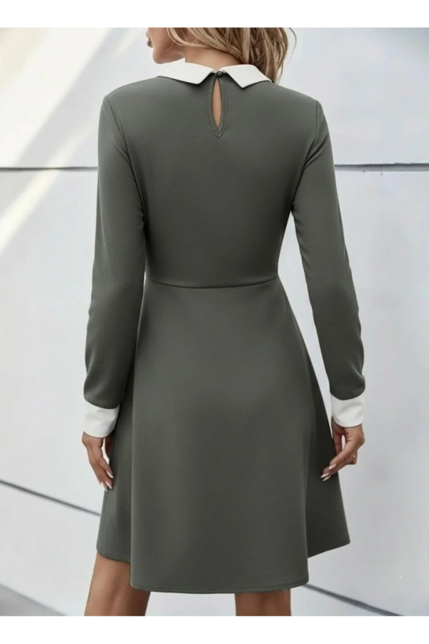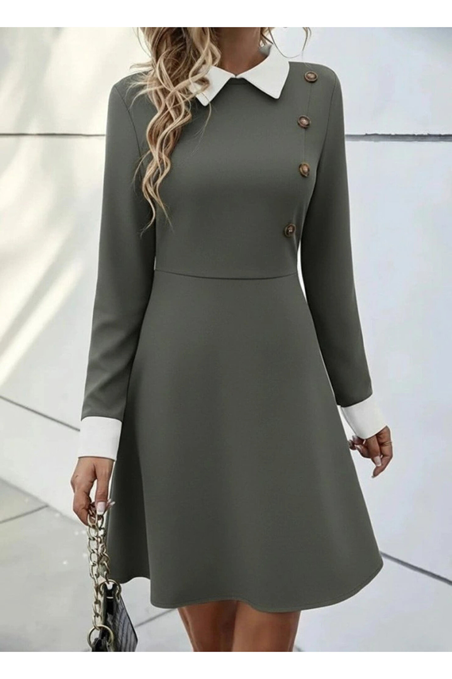Kadın Uzun Kollu Yakalı Düğmeli Çağla Yeşili Mini Elbise Modelin Ölçüleri: Boy:165, Kg:55, Göğüs:90, Bel:72, Kalça: 100 Modelin Üzerindeki Ürün M/38 Bedendir Tarz-Diğerleriyaka-Diğerleridesen-Diğerlerikol Uzunluk-Uzun Koluzunluk-Miniek Ozellikler-Boş/Ek Özellik Yokkalip-Digertarz-Digerkapatma Turu-Diger
