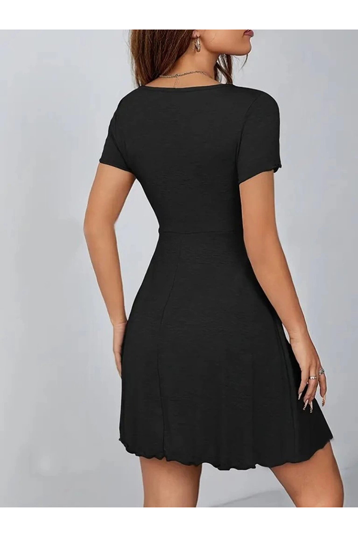 Kadın Kısa Kollu V Yakalı önden Düğmeli çift Renkli Viskon Elbise