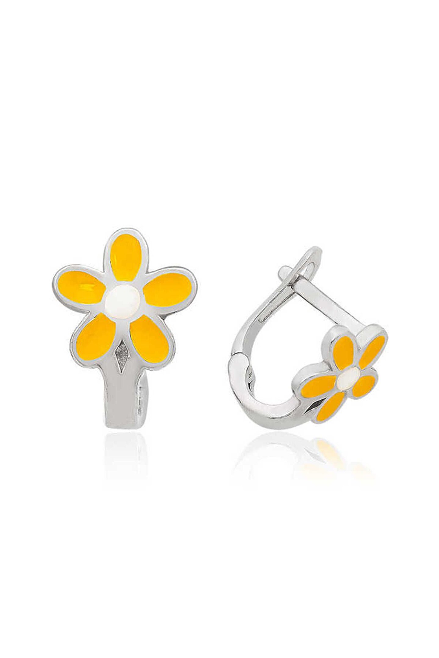 Samur Parti Parti Aksesuar & Kostüm 925 Ayar Gümüş Sarı Çiçek Çocuk Küpesi