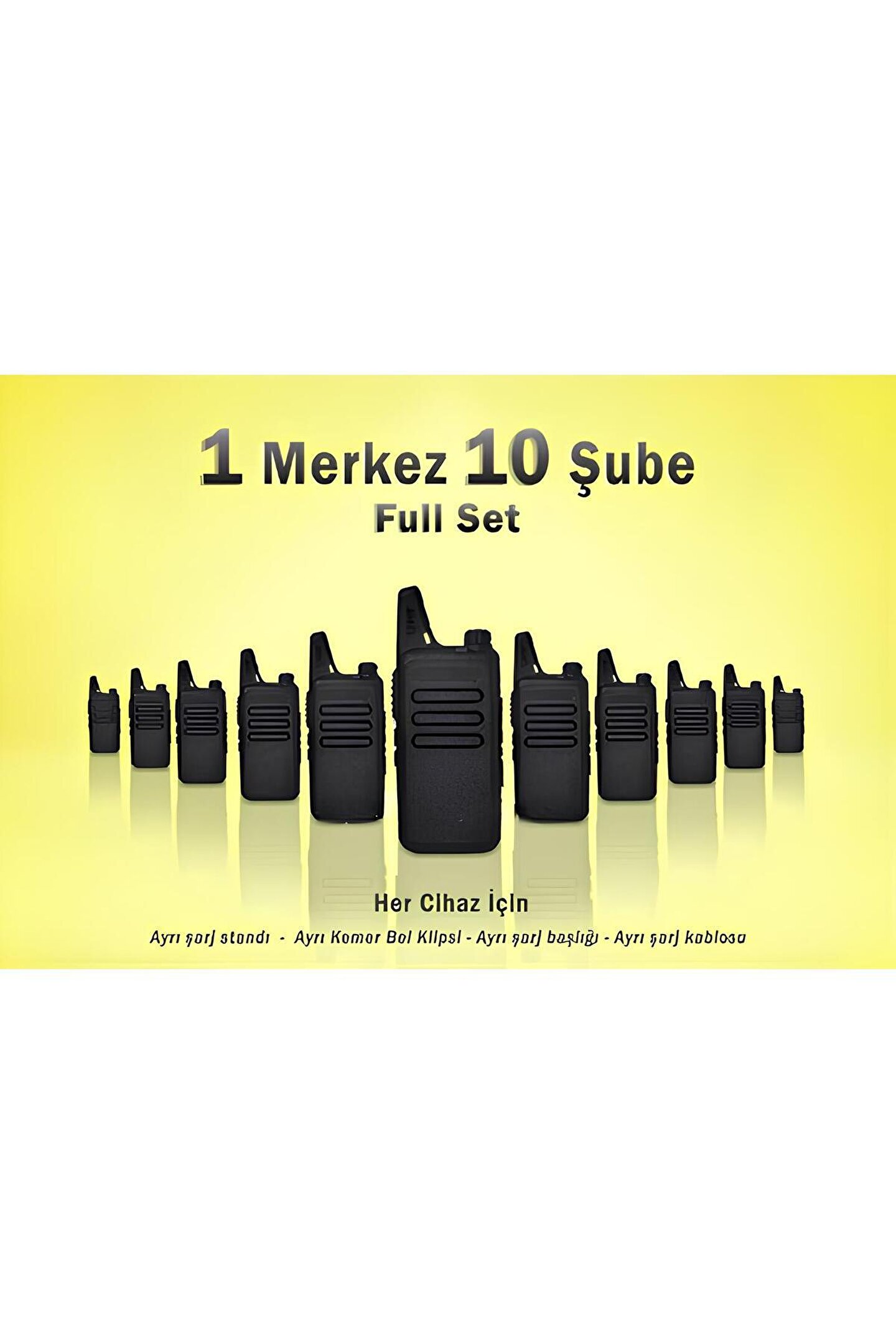 Çaycı ve Kafelere Özel Pmr El Telsiz Seti 1 Merkez 10 Şube Full Set TEKNİK ÖZELLİKLER Frekans aralığı: PMR446 (446; 00625MHz – 446; 09375MHz ) Kanal Kapasitesi: 16 Kanal – Programlanabilir Voltaj:3; 7V Standart pil: 1500mAh Tek şarjda çalışma süresi: 8; 24 saat Uygun sıcaklık aralığı:; 30°C – +60°C Boyutları: 13cm x 5; 5cm x 2cm Ağırlık: Yaklaşık 130gr FM ses: 45dB(W)/42dB(N) Ses çıkış gücü: 500Mw Görüşme Mesafesi Açık Alan: 6; 10Km PAKET İÇERİĞİ 1 Merkez 10 Şube Olmak Üzere 11 Adet Cihaz 11 Adet Batarya 11 Adet Şarj Başlığı 11 Adet Şarj Kablosu 11 Adet Şarj Standı 11 Adet Bel Klipsi ÜRÜNLERİMİZ ÇAYCI'LARA VE KAFECİ'LERE ÖZEL OLARAK HAZIRLANIP PAKET İÇERİĞİN'DE VE RESİM'DE BELİRTİLDİĞİ GİBİ SET HALİNDE ADINIZA FATURALI BİR ŞEKİLDE TARAFINIZA GÖNDERİLMEKTEDİR; ÜRÜNLERİMİZ 2 YIL GARANTİLİDİR;