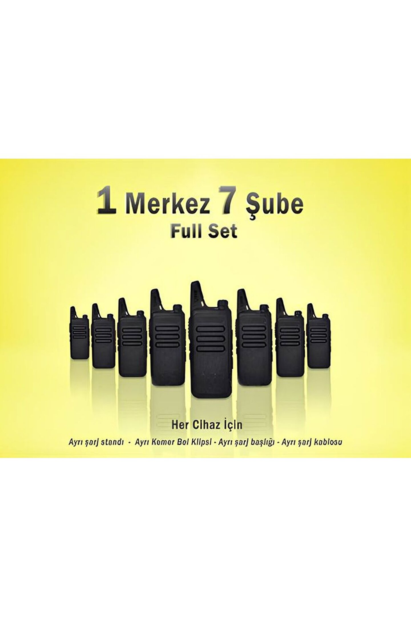 Çaycı ve Kafelere Özel Pmr El Telsiz Seti 1 Merkez 7 Şube+ Kulaklık Full Set KULAKLIK TEKNİK ÖZELLİKLER Frekans aralığı: PMR446 (446; 00625MHz – 446; 09375MHz ) Kanal Kapasitesi: 16 Kanal – Programlanabilir Voltaj:3; 7V Standart pil: 1500mAh Tek şarjda çalışma süresi: 8; 24 saat Uygun sıcaklık aralığı:; 30°C – +60°C Boyutları: 13cm x 5; 5cm x 2cm Ağırlık: Yaklaşık 130gr FM ses: 45dB(W)/42dB(N) Ses çıkış gücü: 500Mw Görüşme Mesafesi Açık Alan: 6; 10Km PAKET İÇERİĞİ 1 Merkez 7 Şube Olmak Üzere 8 Adet Cihaz 8 Adet Batarya 8 Adet Şarj Başlığı 8 Adet Şarj Kablosu 8 Adet Şarj Standı 8 Adet Bel Klipsi 8 Adet Kulaklık ÜRÜNLERİMİZ ÇAYCI'LARA VE KAFECİ'LERE ÖZEL OLARAK HAZIRLANIP PAKET İÇERİĞİN'DE VE RESİM'DE BELİRTİLDİĞİ GİBİ SET HALİNDE ADINIZA FATURALI BİR ŞEKİLDE TARAFINIZA GÖNDERİLMEKTEDİR; ÜRÜNLERİMİZ 2 YIL GARANTİLİDİR;