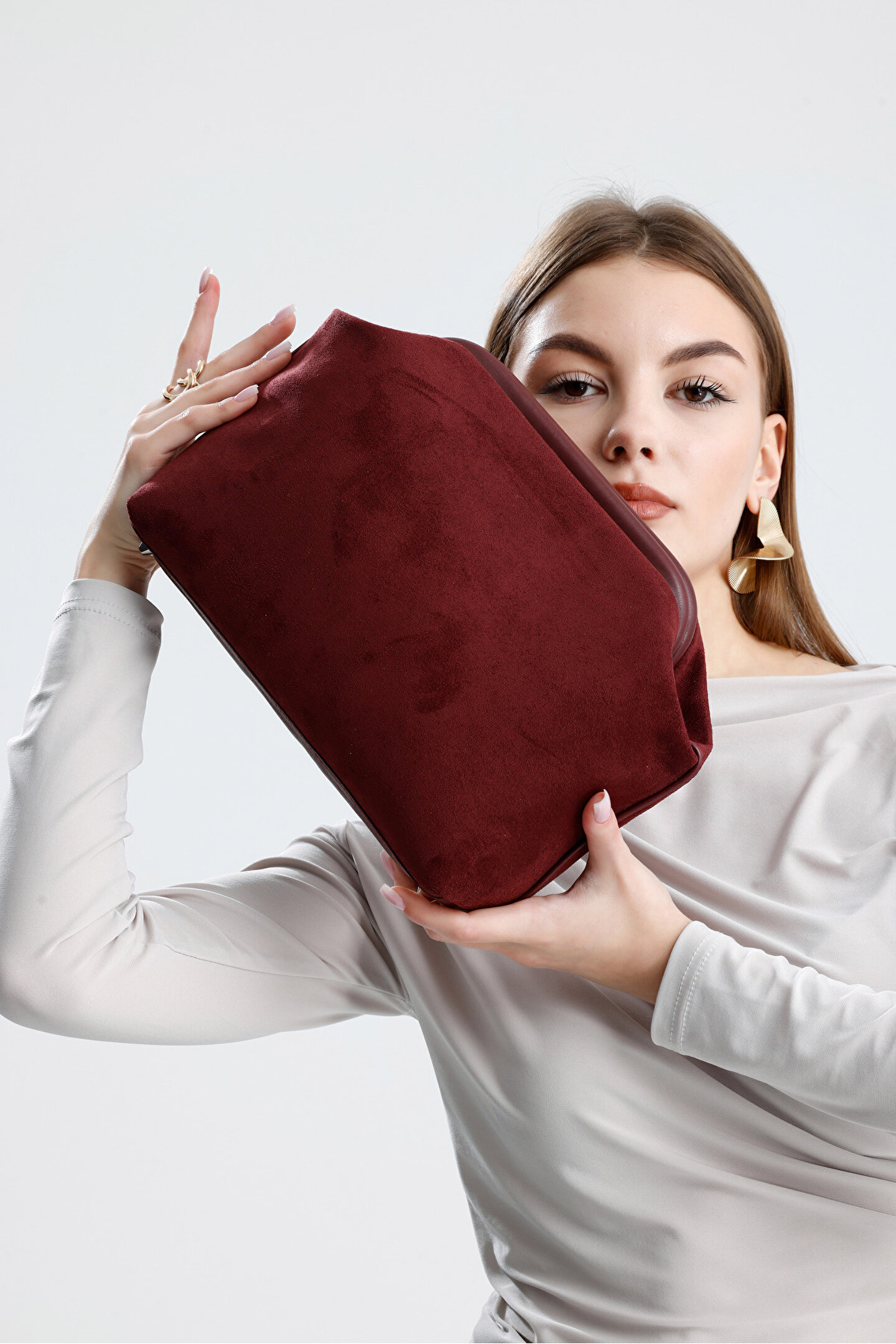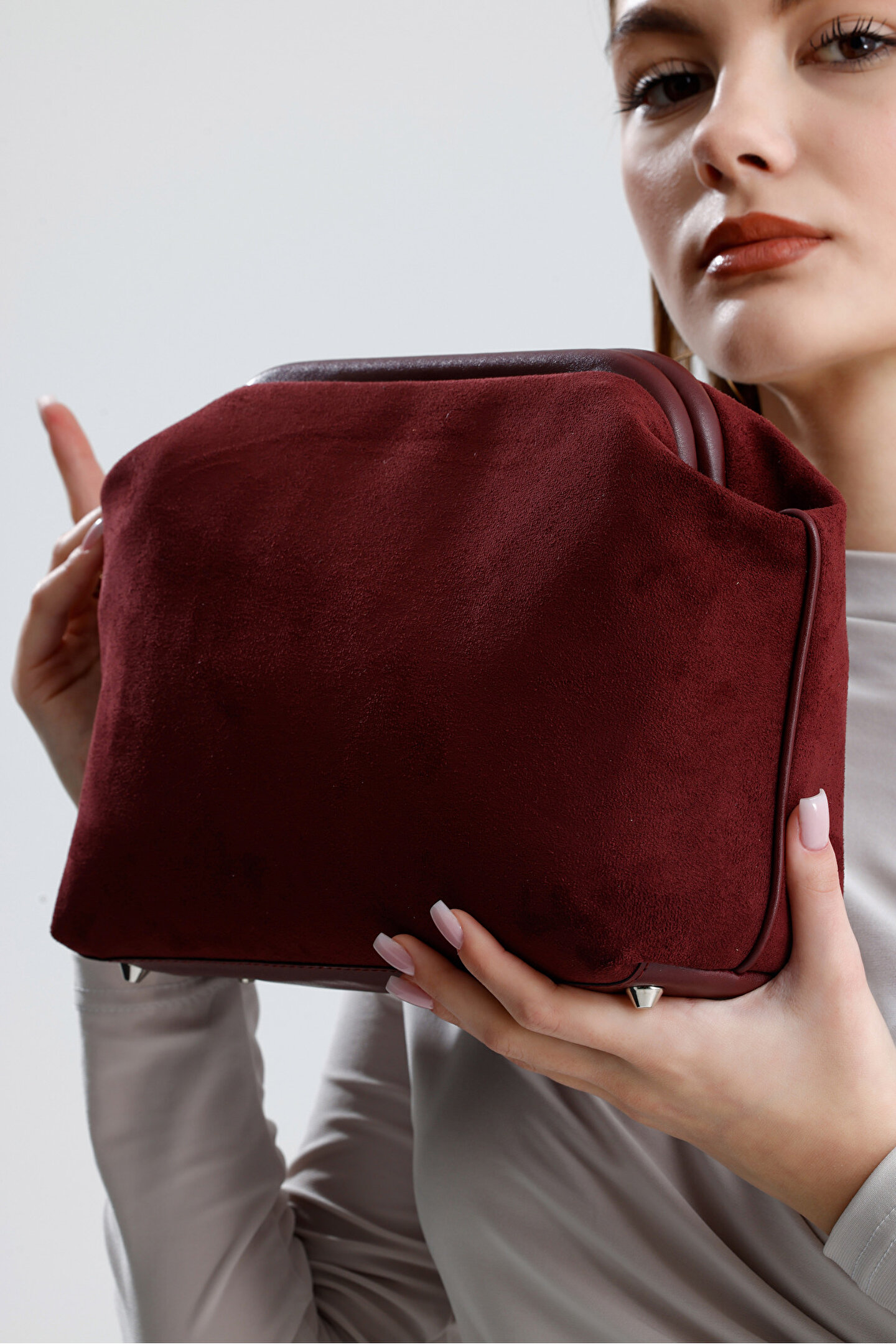 Zarif bordo rengi ile her ortama uyum sağlayan Heybes Kadın Süet Clutch El Çantası, şıklığınızı tamamlar.; Her anınıza eşlik eder, hem gündüz hem de gece kombinlerinizde vazgeçilmez bir aksesuar haline gelir.; Bordo kadifemsi doku, zarafetiyle birleşerek büyüleyici durur.; Kaliteli süet materyali sayesinde dayanıklılığı yüksek ve uzun süreli kullanım için idealdir.; Sade ve düz deseniyle kolayca kombinlenebilen bu el çantası, zamansız bir parça olarak gardırobunuzda yerini alır.; Zarif ve dingin, ama aynı zamanda görkemli bir bütünlük sağlıyor.; Kilit kapama sistemi pratik kullanma imkânı sunar.; Heybes tarafından özel el işçiliği ile üretilmiştir.; •Dış Malzeme: Dokuma Süet •İç Malzeme: Vegan Deri; İçi astarlıdır ve 1 adet iç cebi bulunmaktadır.; 33x19x10 cm (Genişlik x Yükseklik x Derinlik) ölçülerindedir.