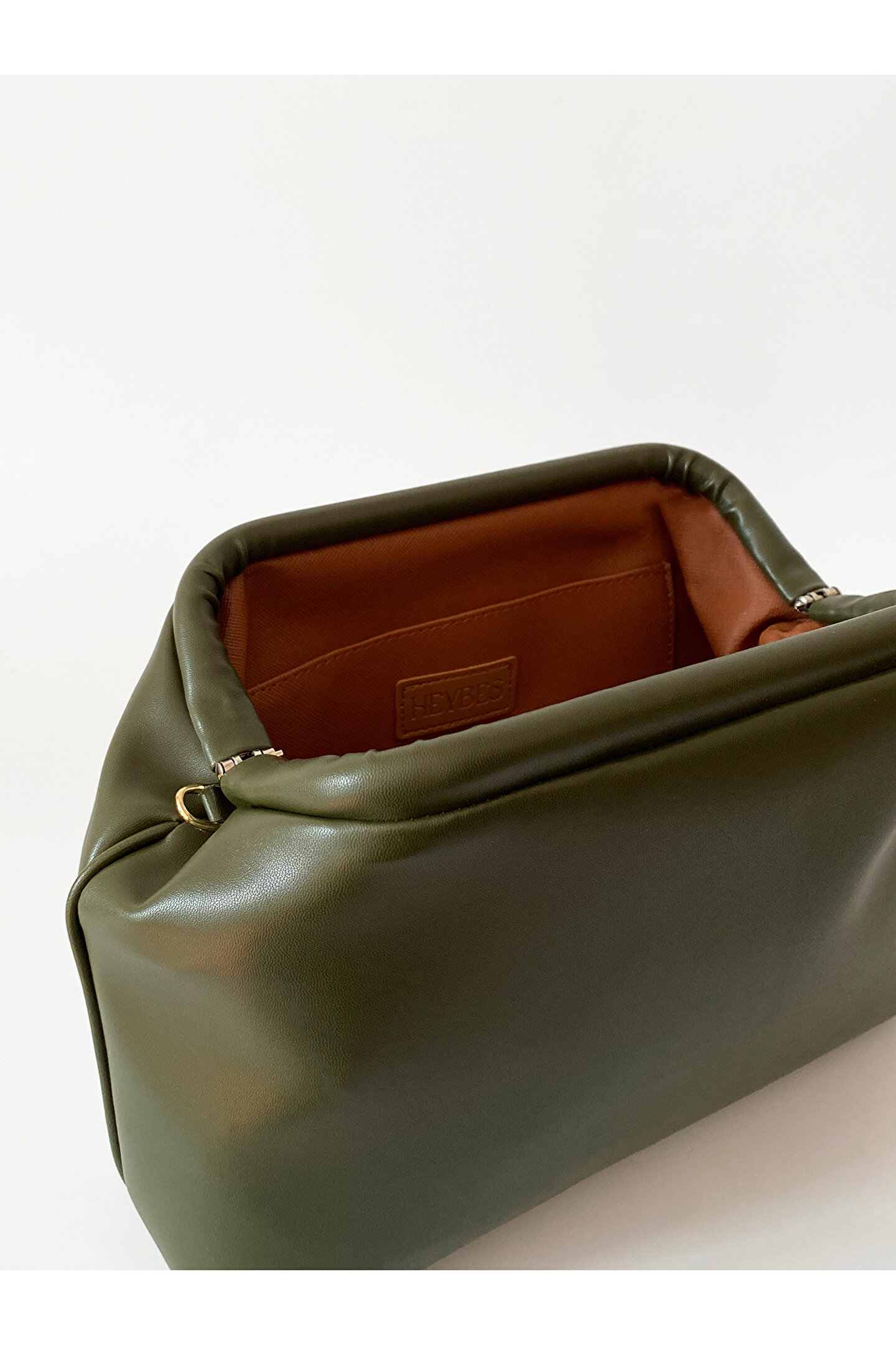 Heybes Kadın Haki Yeşil Vegan Deri Çıkarılabilir Saplı Omuz ve El Çantası; Haki yeşili vegan deriden üretilmiş olan bu şık çanta, hem zarif tasarımı hem de kullanışlı özellikleriyle öne çıkmaktadır.; Minimal çanta, günlük kullanım için ideal bir alan sunar ve eşyalarınızı rahatlıkla taşımanızı sağlar.; Çantanın en önemli özelliklerinden biri de çıkarılabilir sapının bulunmasıdır.; Bu sayede, çantanızı omuz çantası olarak kullanabileceğiniz gibi sapını çıkararak el çantası (clutch) olarak da kullanabilirsiniz.; Bu çok yönlü kullanım imkanı, çantayı farklı ortamlarda ve durumlarda rahatlıkla kullanmanıza olanak tanır.; Kilit kapama sistemi pratik kullanım imkânı sunar.; Heybes tarafından özel el işçiliği ile üretilmiştir.; İç kısmı astarlıdır ve 1 adet iç cebi bulunmaktadır.; •Dış Materyal: Vegan Deri •Çerçeve: Vegan Deri •İç Materyal: Vegan Deri; 28x19x10 cm (Genişlik x Yükseklik x Derinlik) ölçülerindedir.;