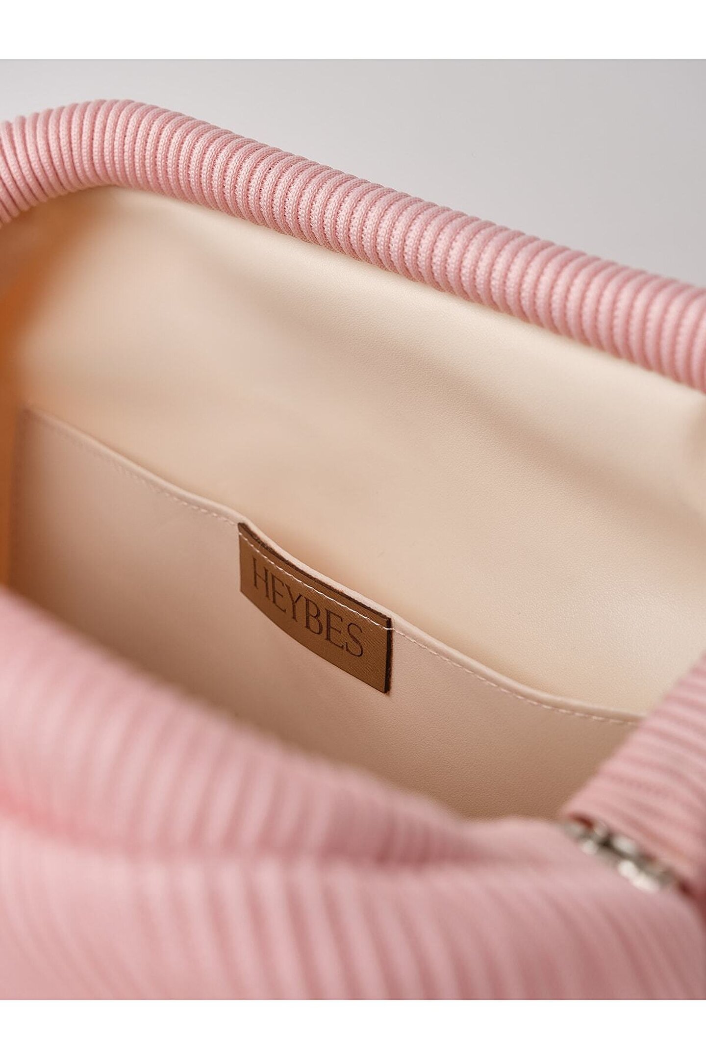 Heybes Kadın Pembe Piliseli Clutch El Çantası; Günlük kullanıma uygun tasarımıyla, rahatlığı ve şıklığı bir arada sunar.; Sade ve düz deseniyle, her türlü kıyafetle kolayca kombinlenebilir.; Tekstil materyali sayesinde hafif ve dayanıklı bir kullanım sağlar.; Kilit kapama sistemi pratik kullanım imkânı sunar.; Heybes tarafından özel el işçiliği ile üretilmiştir.; İç kısmı astarlıdır ve 1 adet iç cebi bulunmaktadır.; •Gövde: Dokuma Kumaş •İç Materyal: Vegan Deri; 28x19x10 cm (Genişlik x Yükseklik x Derinlik) ölçülerindedir.; • İç hacim yükseklik: 16 cm • İç hacim genişlik: 18 cm