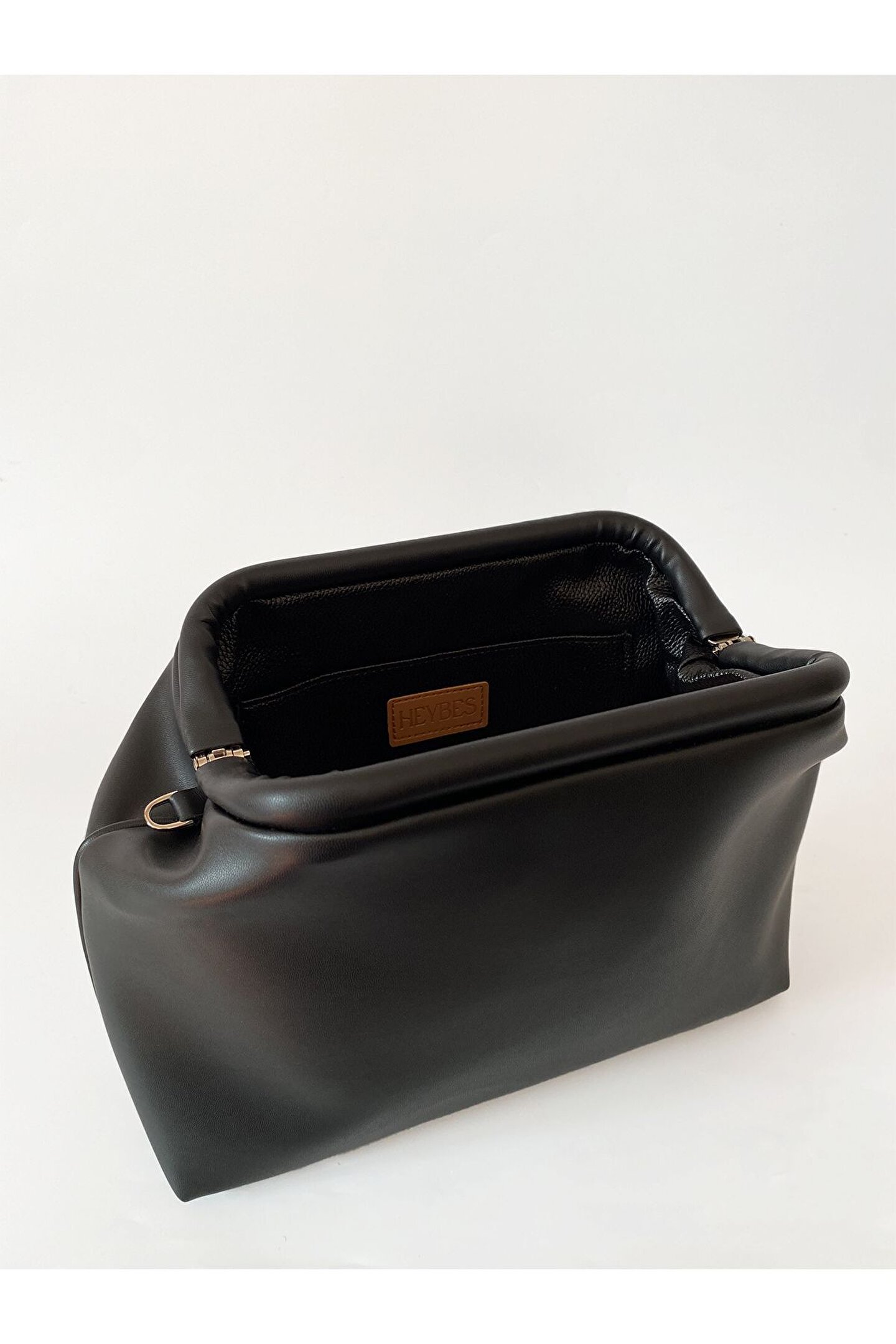 Heybes Kadın Siyah Vegan Deri Çıkarılabilir Saplı Omuz ve El Çantası; Siyah vegan deriden üretilmiş olan bu şık çanta, hem zarif tasarımı hem de kullanışlı özellikleriyle öne çıkmaktadır.; Minimal çanta, günlük kullanım için ideal bir alan sunar ve eşyalarınızı rahatlıkla taşımanızı sağlar.; Çantanın en önemli özelliklerinden biri de çıkarılabilir sapının bulunmasıdır.; Bu sayede, çantanızı omuz çantası olarak kullanabileceğiniz gibi sapını çıkararak el çantası (clutch) olarak da kullanabilirsiniz.; Bu çok yönlü kullanım imkanı, çantayı farklı ortamlarda ve durumlarda rahatlıkla kullanmanıza olanak tanır.; Kilit kapama sistemi pratik kullanım imkânı sunar.; Heybes tarafından özel el işçiliği ile üretilmiştir.; İç kısmı astarlıdır ve 1 adet iç cebi bulunmaktadır.; •Dış Materyal: Vegan Deri •Çerçeve: Vegan Deri •İç Materyal: Vegan Deri; 28x19x10 cm (Genişlik x Yükseklik x Derinlik) ölçülerindedir.;