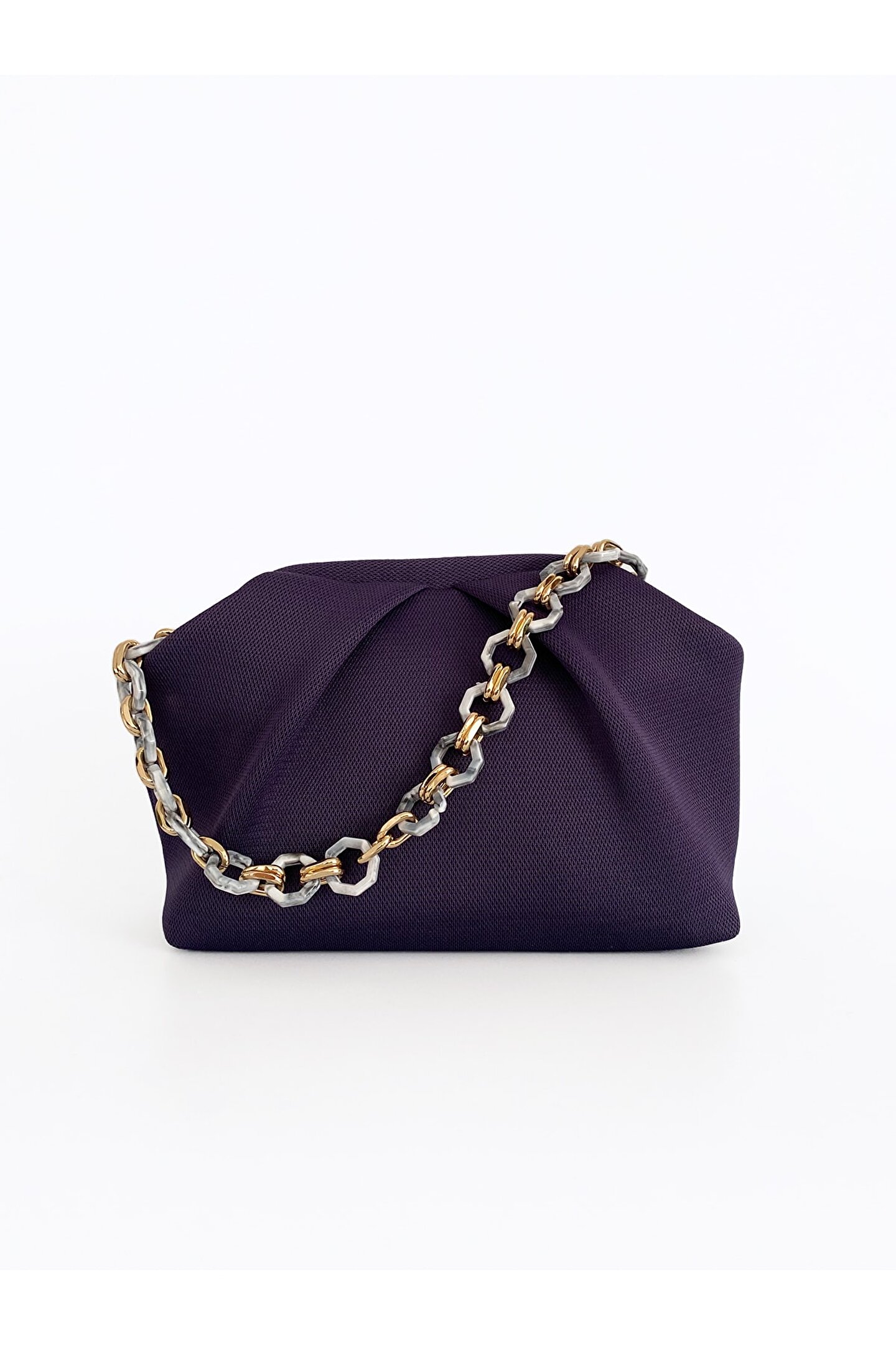 Sade ve şık tasarımıyla her kıyafetle uyum sağlayan düz desenli mor zincirli omuz çantası; Günlük kullanım için ideal, rahat ve fonksiyonel bir aksesuar; Her yaş grubuna hitap eden geniş kullanıcı yelpazesi ile herkesin tercihi olabilir; Dayanıklı dokuma kumaş yapısı sayesinde uzun süreli kullanım imkanı sunar;