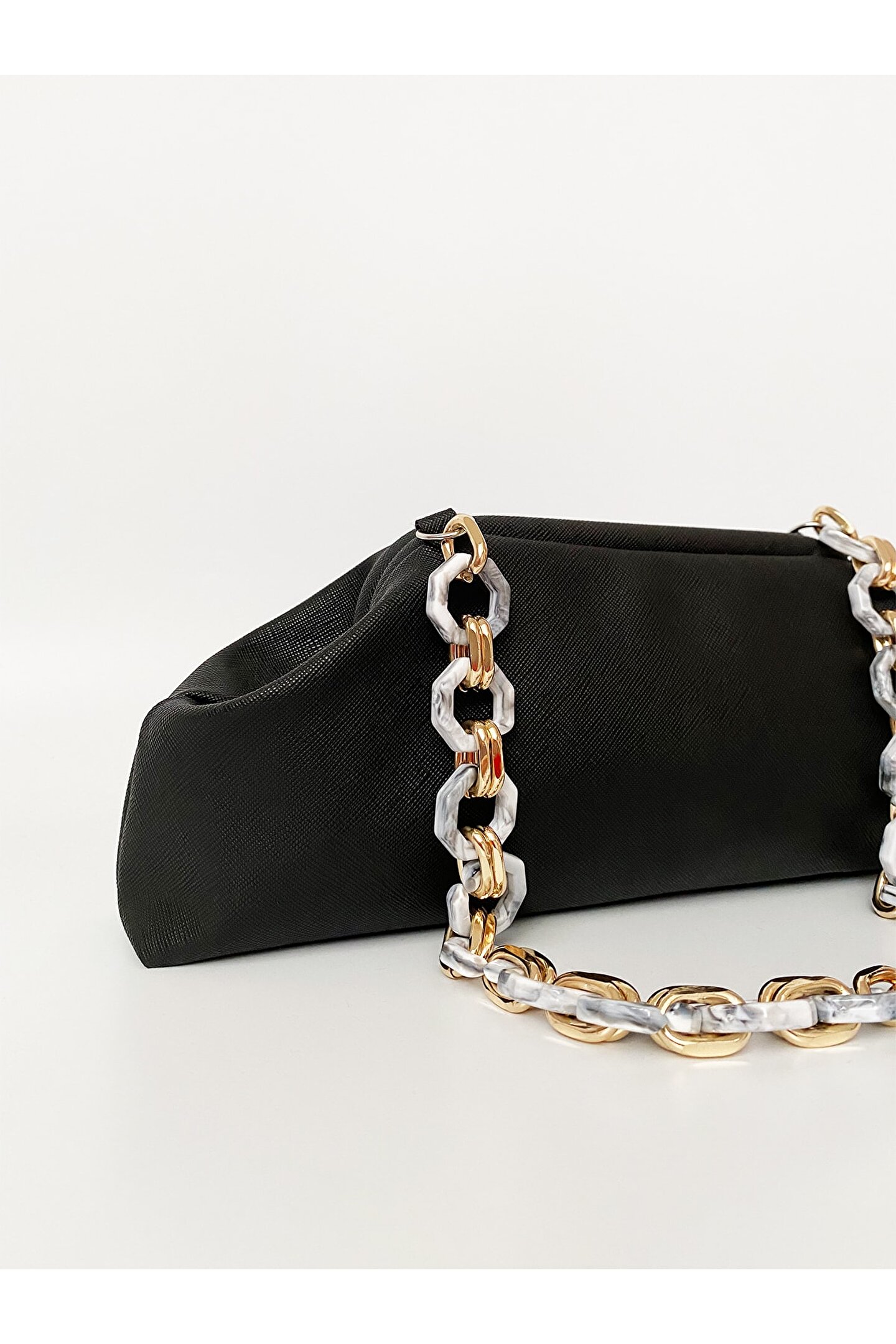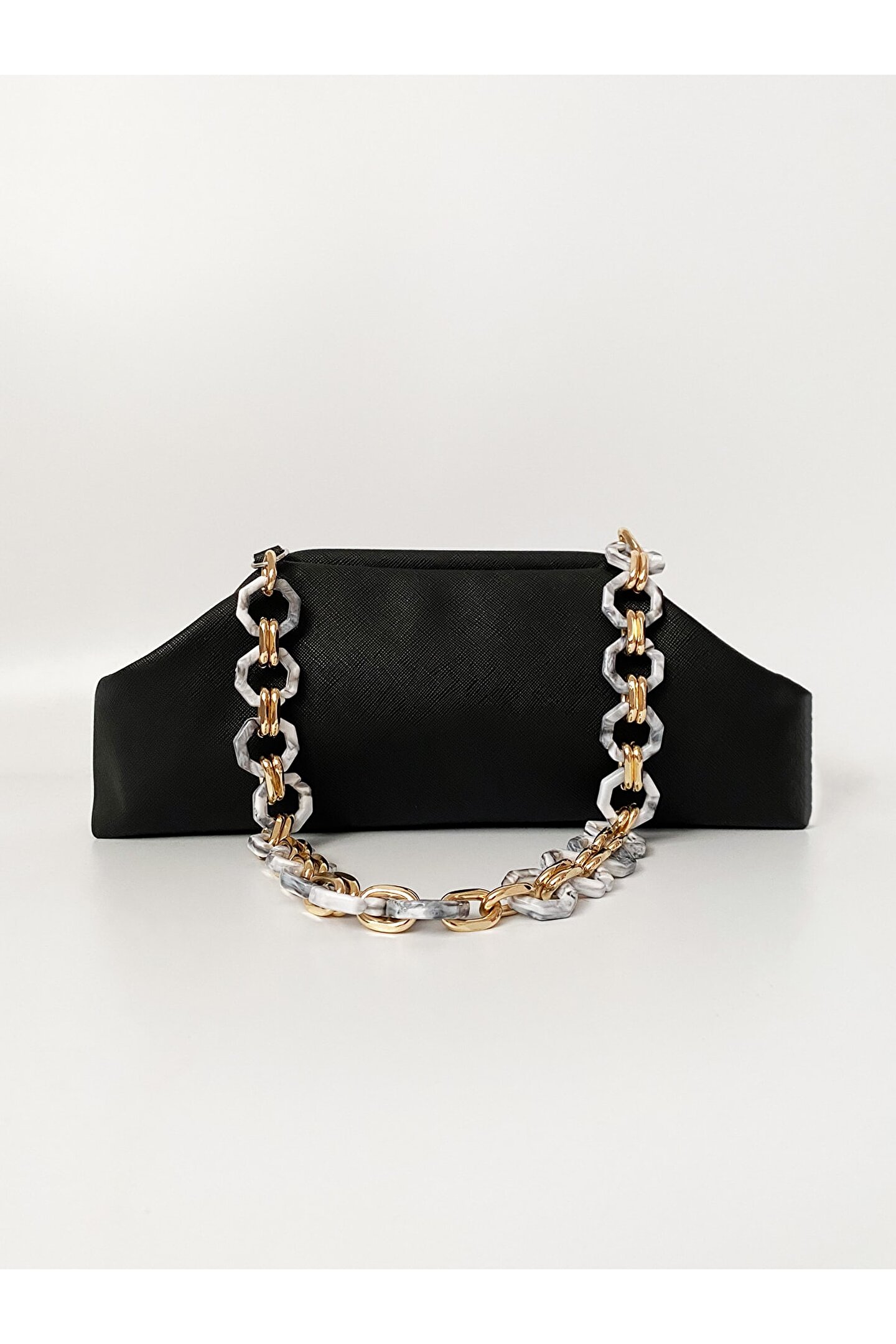 - Zarif siyah rengiyle her kıyafetle uyum sağlayan zincir detaylı baget omuz çantası, şıklığınızı tamamlar; - Dayanıklı yapısı sayesinde uzun süreli kullanım için idealdir ve günlük ihtiyaçlarınızı rahatça taşımanızı sağlar; - Omuz askısı, konforlu bir taşıma deneyimi sunarak omuzlarınızda ağırlık yapmadan rahatça kullanmanızı mümkün kılar; - İç kısmında bulunan bölme ve cepler ile eşyalarınızı düzenli bir şekilde saklamanızı kolaylaştırır; - Hem günlük kullanım hem de özel günler için uygun tasarımıyla, her ortamda stilinizi yansıtmanızı sağlar;