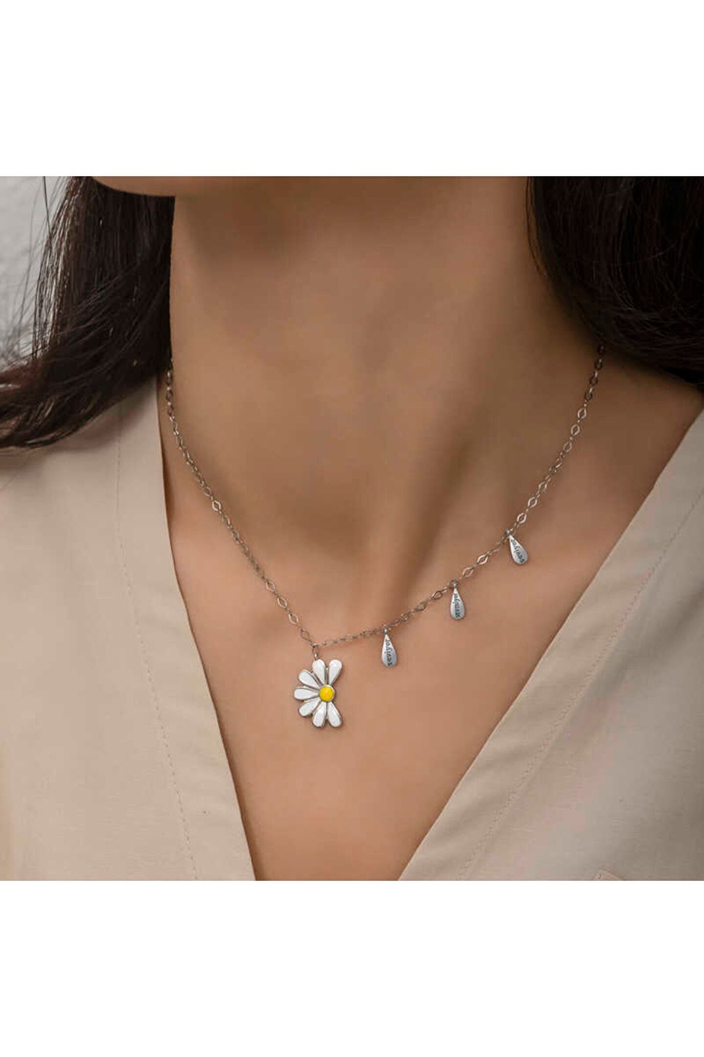 925 Ayar Gümüş Papatya Seviyor Sevmiyor Bayan Gümüş Kolye
