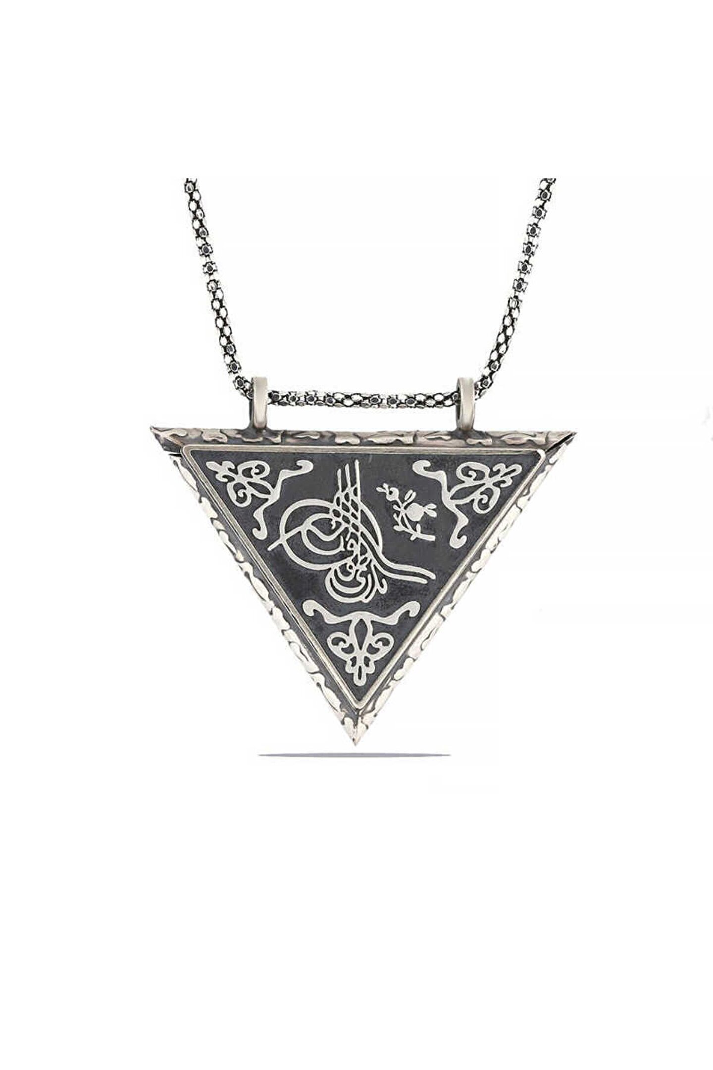 925 Ayar Gümüş Üçgen Içi Açılabilen Tuğra Muskalık Gümüş Kolye