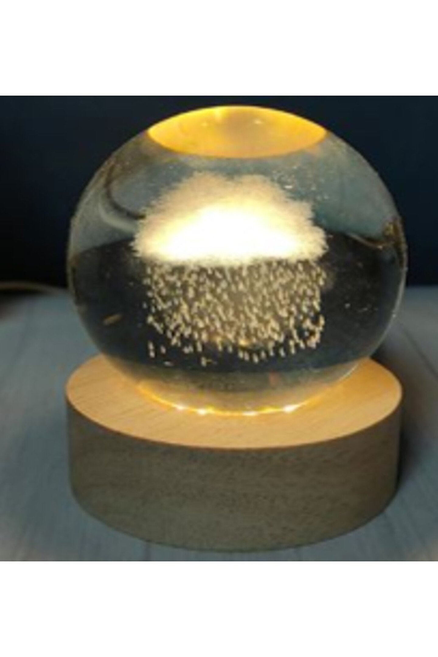 Dekoratif Bulut Ve Yağmur Tasarımlı Ahşap Altlıklı Işıklı Cam Küre Büyük Boycam:8cm Ahşap: