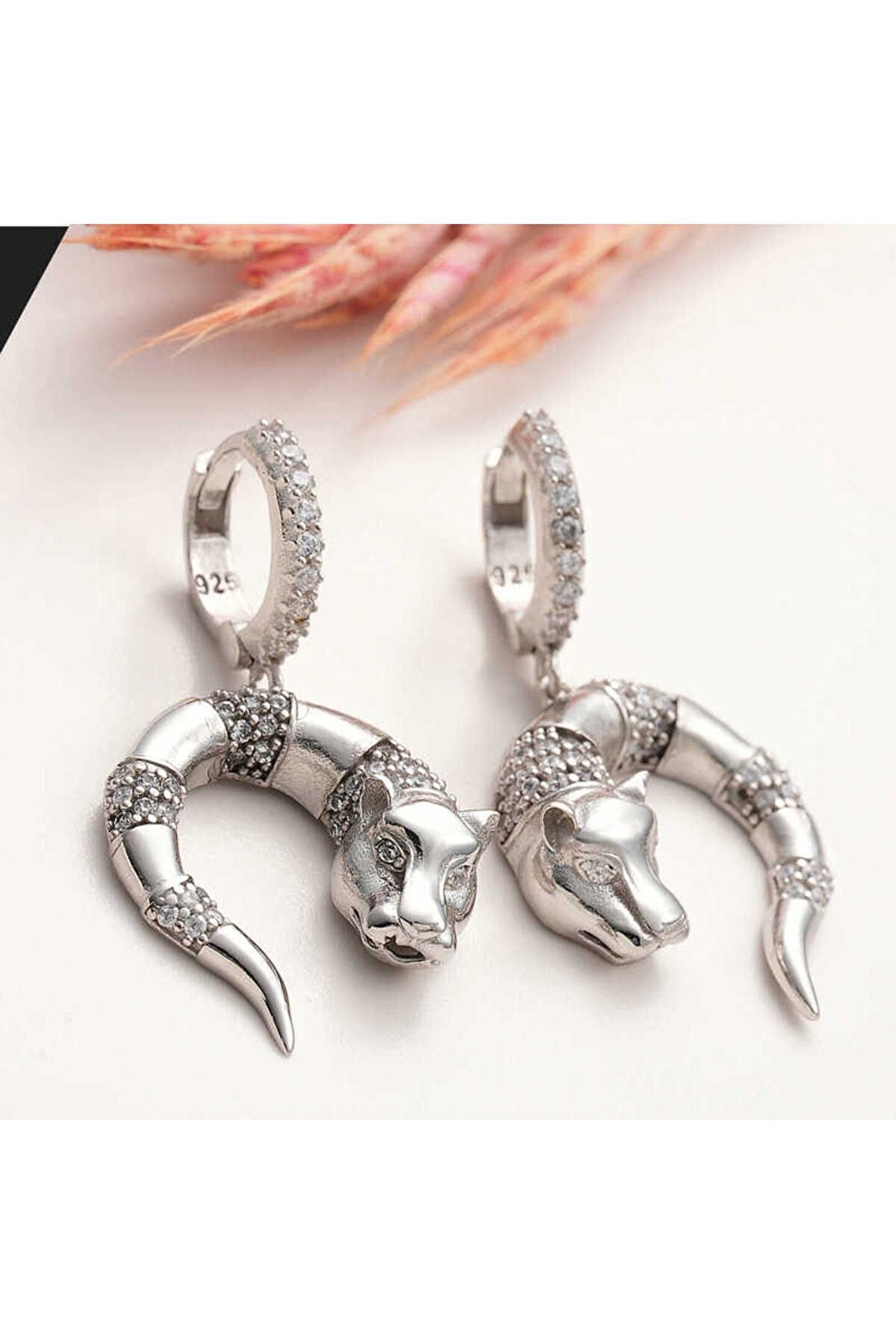 Gümüş Sallantılı Kaplan Figürlü Kadın Küpe