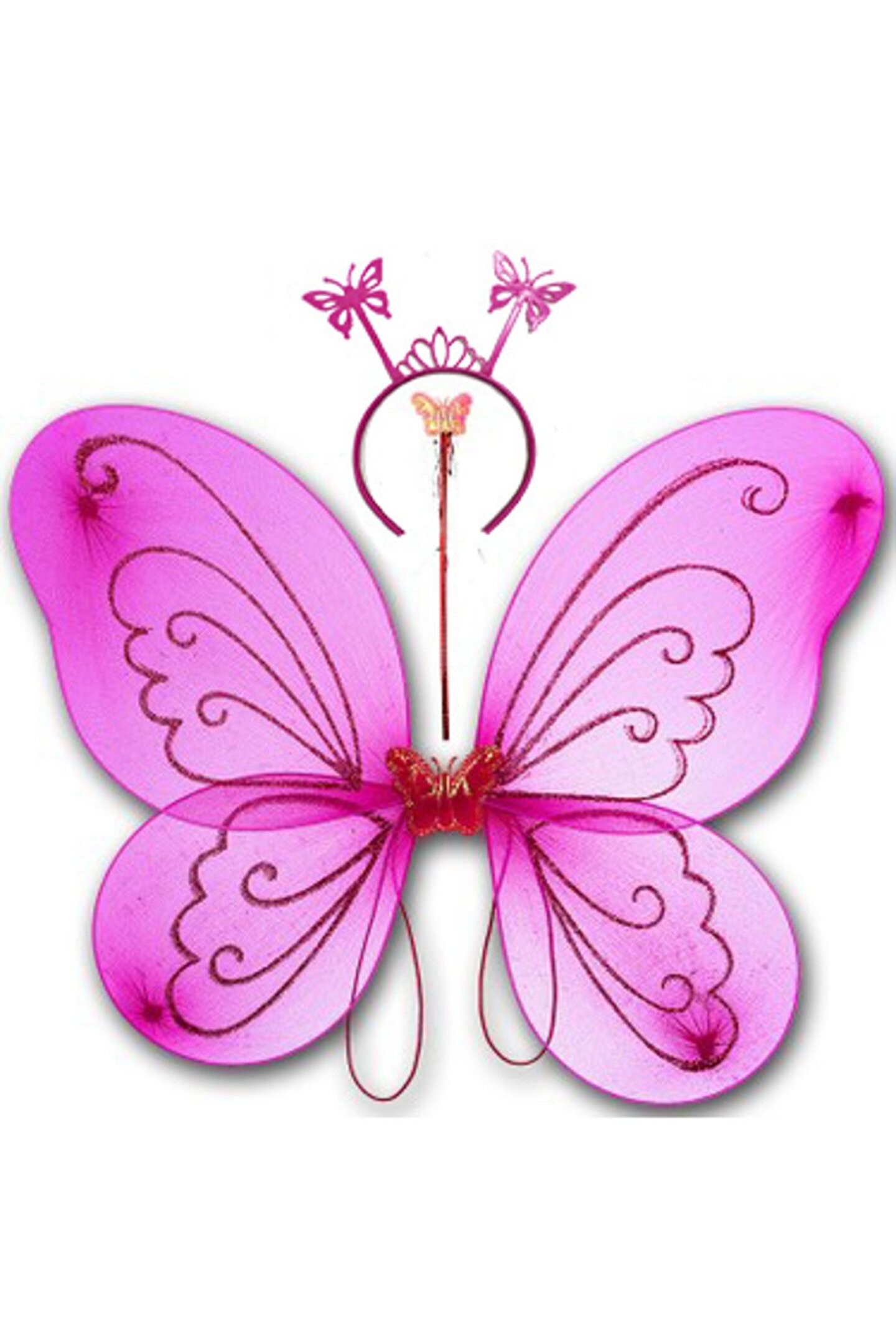 Himarry Fuşya Renk Kelebek Kanadı Tacı Ve Sopası 50x37 Cm