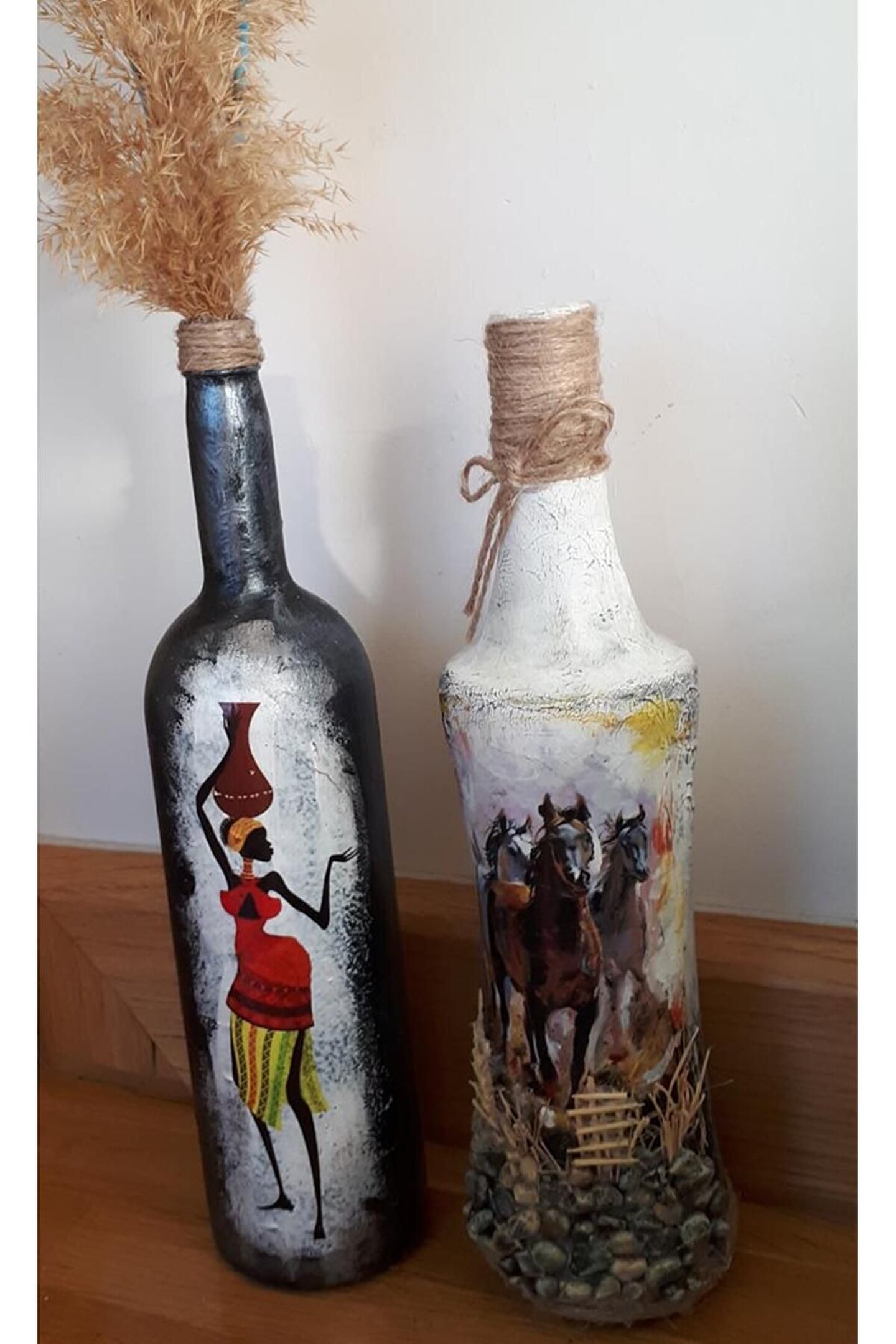 Himarry ikili Afrikalı kadın figürlü vazo ve at figürlü biblo
