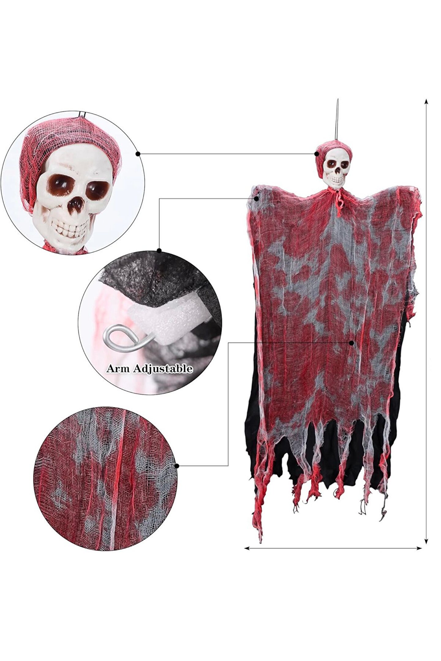 Led Işıklı Kahkaha Atan Sesli Sensörlü Ürpertici Kuru Kafa Kanlı Korku Hayale - KTJ6853-9252