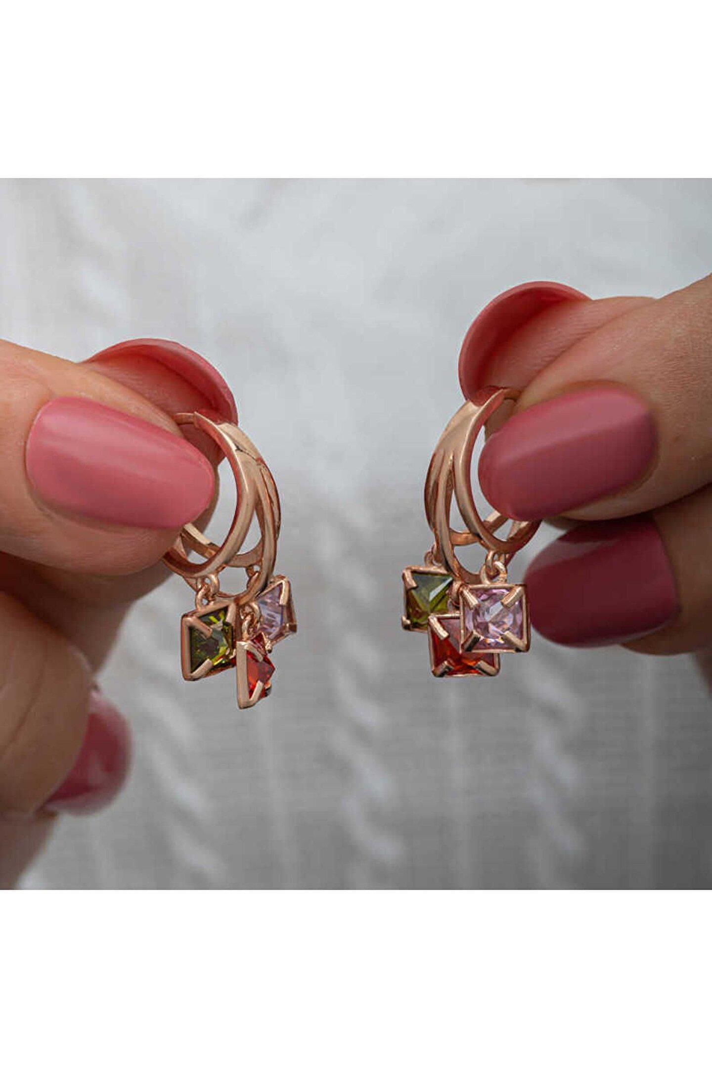 Altın Kaplama Pembe Baget Taşlı Üçlü Küpe