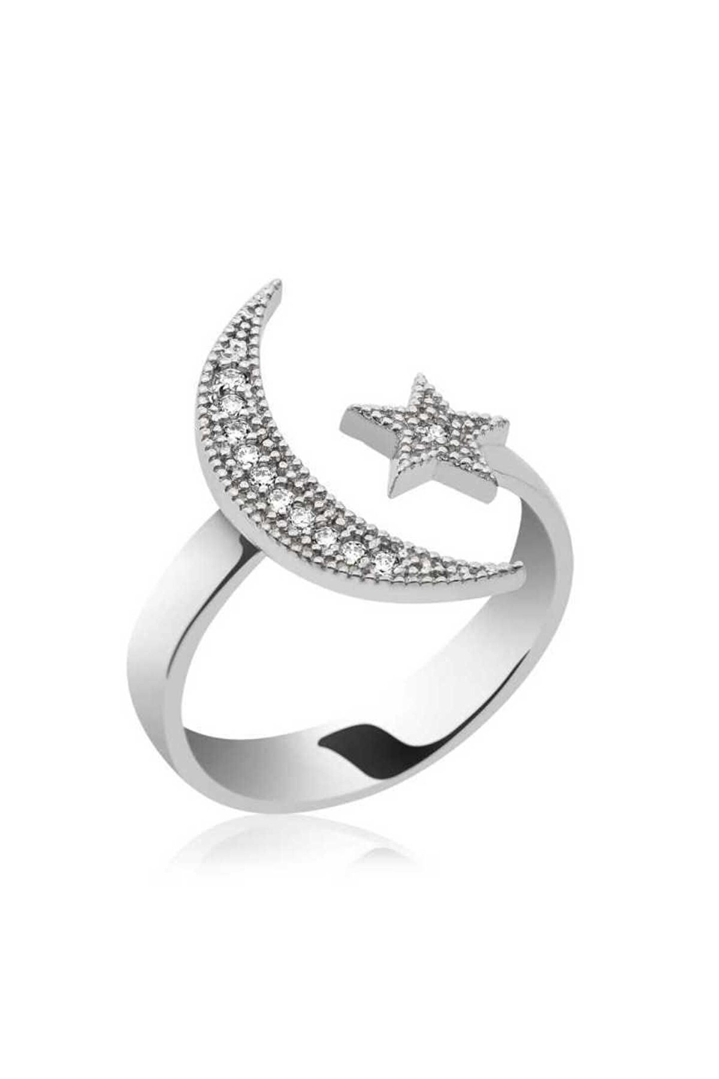 Samur Parti Parti Aksesuar & Kostüm 925 Ayar Gümüş Ay Yıldız Yüzük