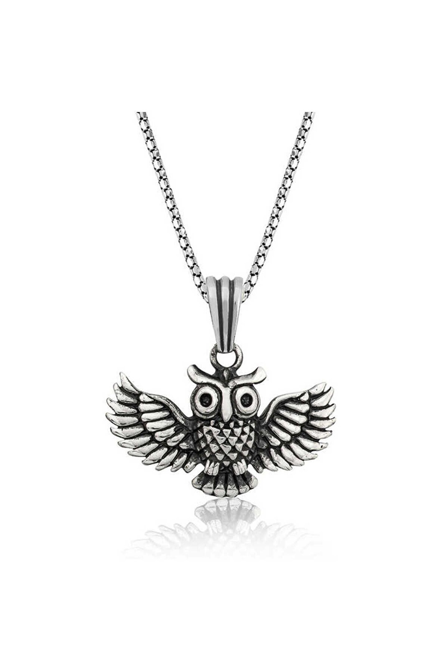 Samur Parti Parti Aksesuar & Kostüm 925 Ayar Gümüş Baykuş Erkek Gümüş Kolye