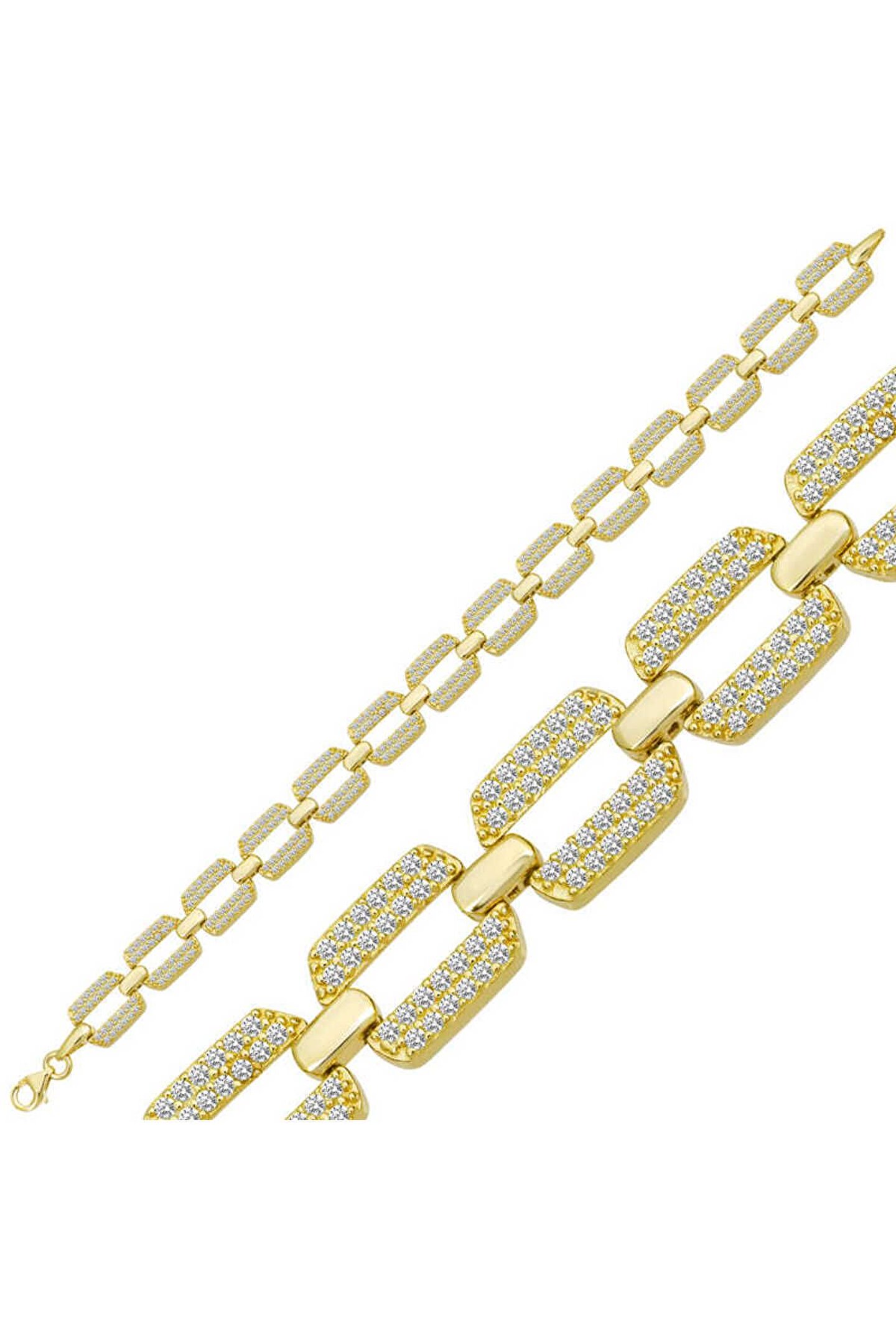 Samur Parti Parti Aksesuar & Kostüm 925 Ayar Gümüş Gold Zirkon Taşlı Kadın Bileklik