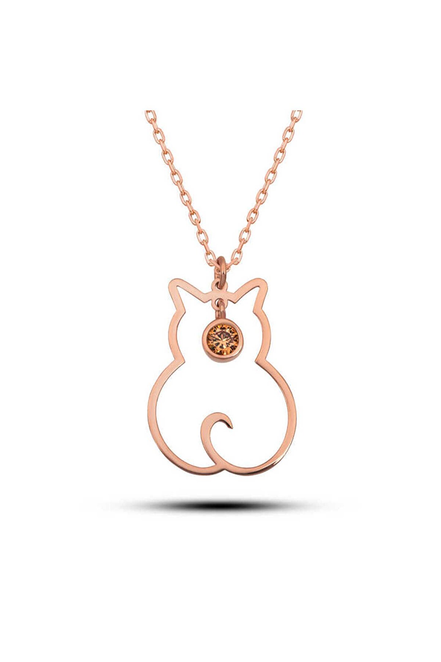 Samur Parti Parti Aksesuar & Kostüm 925 Ayar Gümüş Kasım Ayı Doğum Taşı Kedi Kadın Gümüş Kolye
