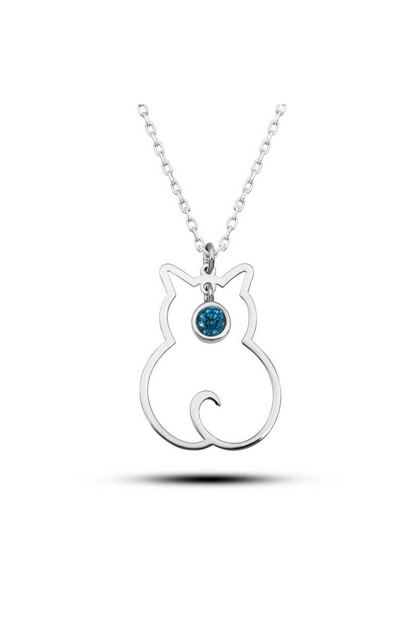 Samur Parti Parti Aksesuar & Kostüm 925 Ayar Gümüş Mart Ayı Doğum Taşı Kedi Kadın Kolye