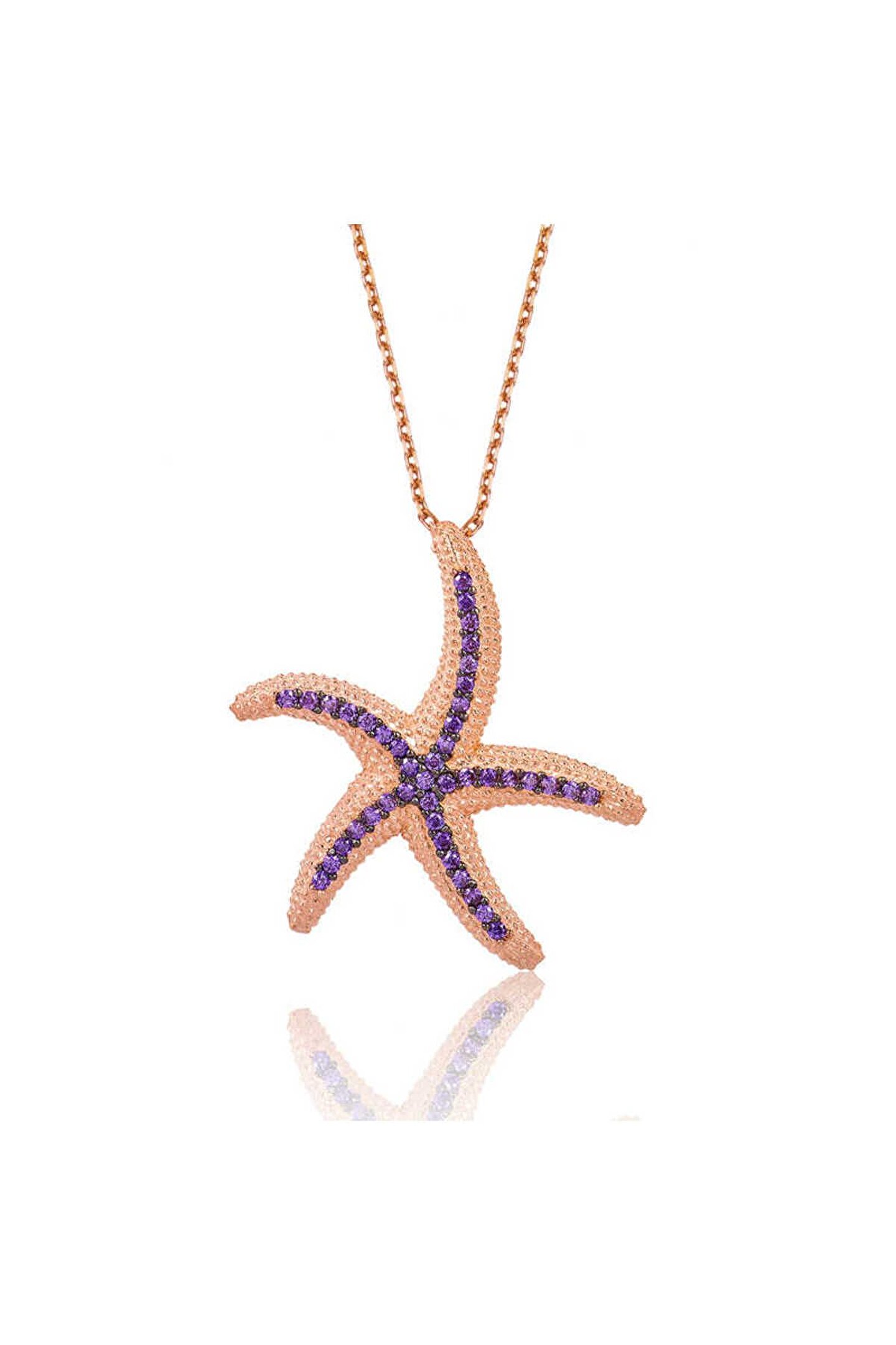 Samur Parti Parti Aksesuar & Kostüm 925 Ayar Gümüş Mor Deniz Yıldızı Kadın Gümüş Kolye