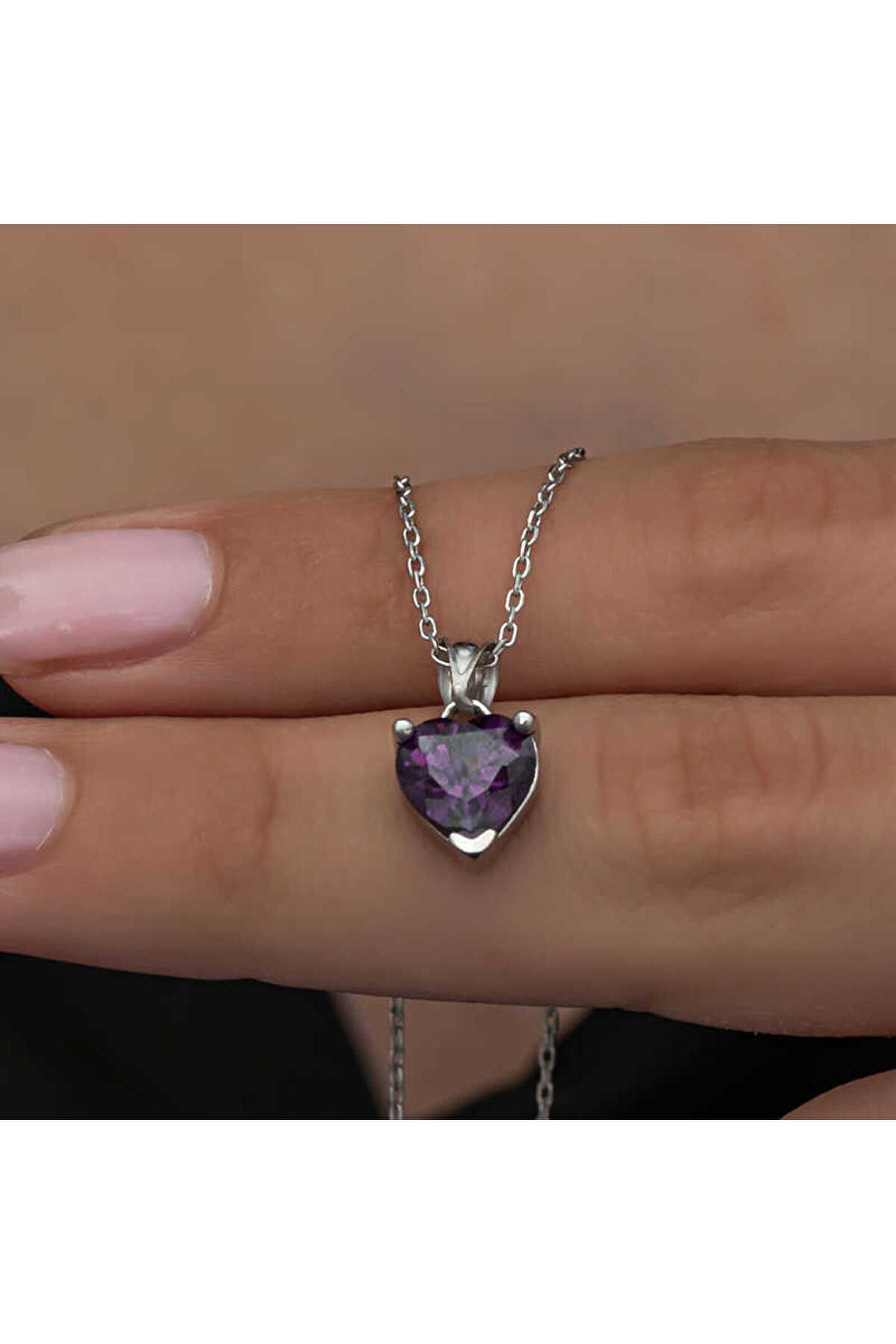 Samur Parti Parti Aksesuar & Kostüm 925 Ayar Gümüş Mor Taşlı Kalpli Kadın Kolye