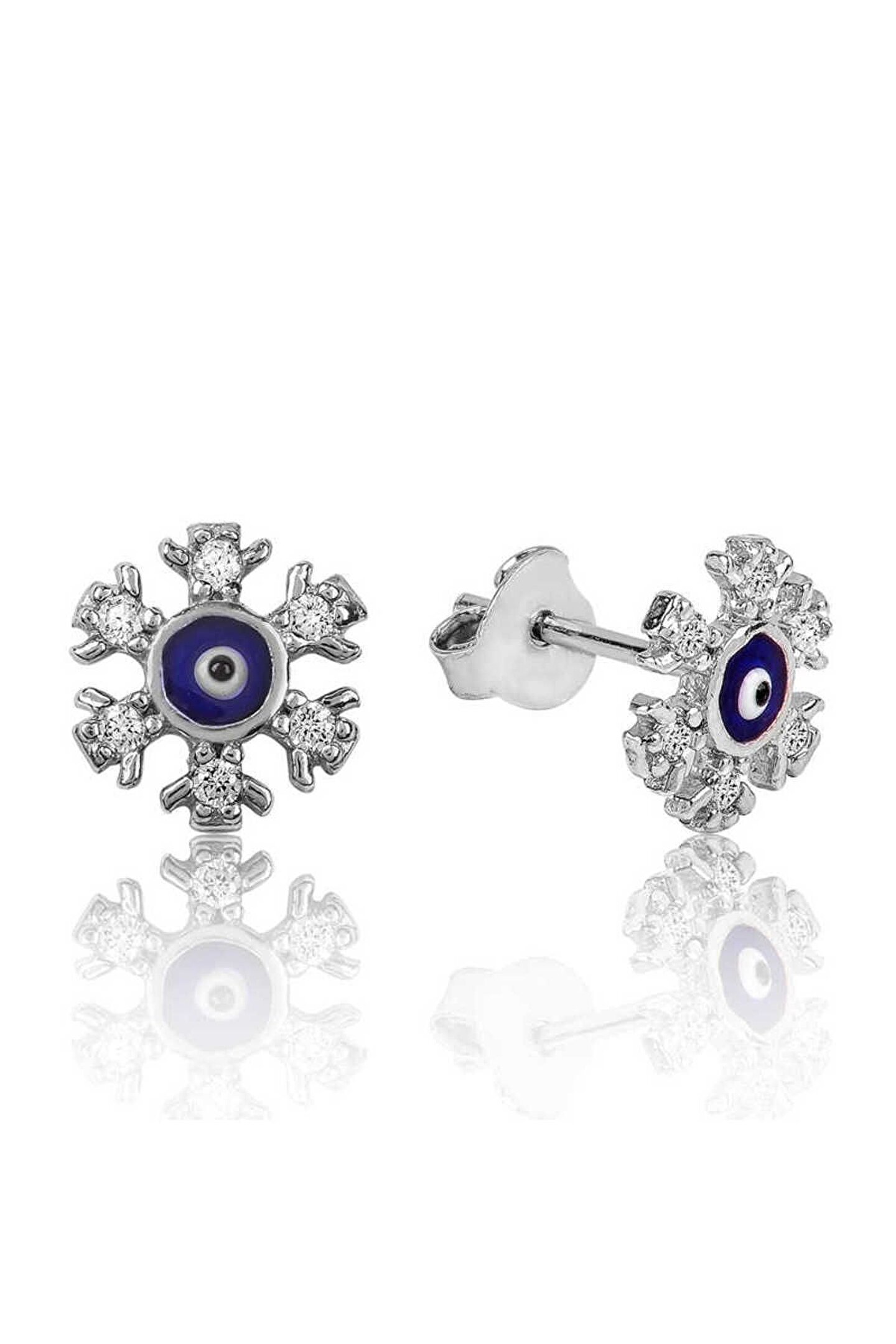Samur Parti Parti Aksesuar & Kostüm 925 Ayar Gümüş Nazarlı Kar Tanesi Çivili Küpe