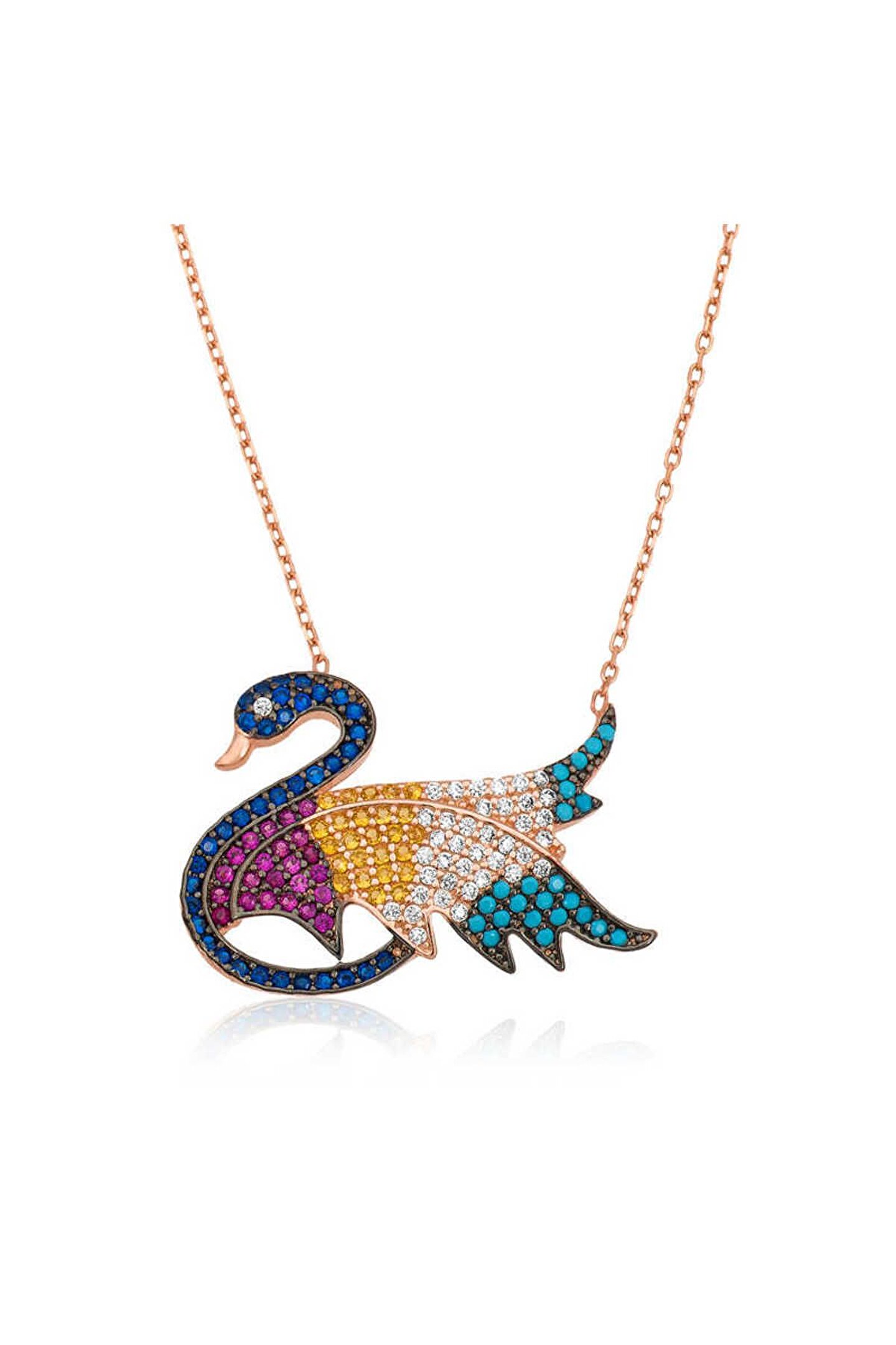 Samur Parti Parti Aksesuar & Kostüm 925 Ayar Gümüş Renkli Taşlı Kuğu Gümüş Kadın Kolye