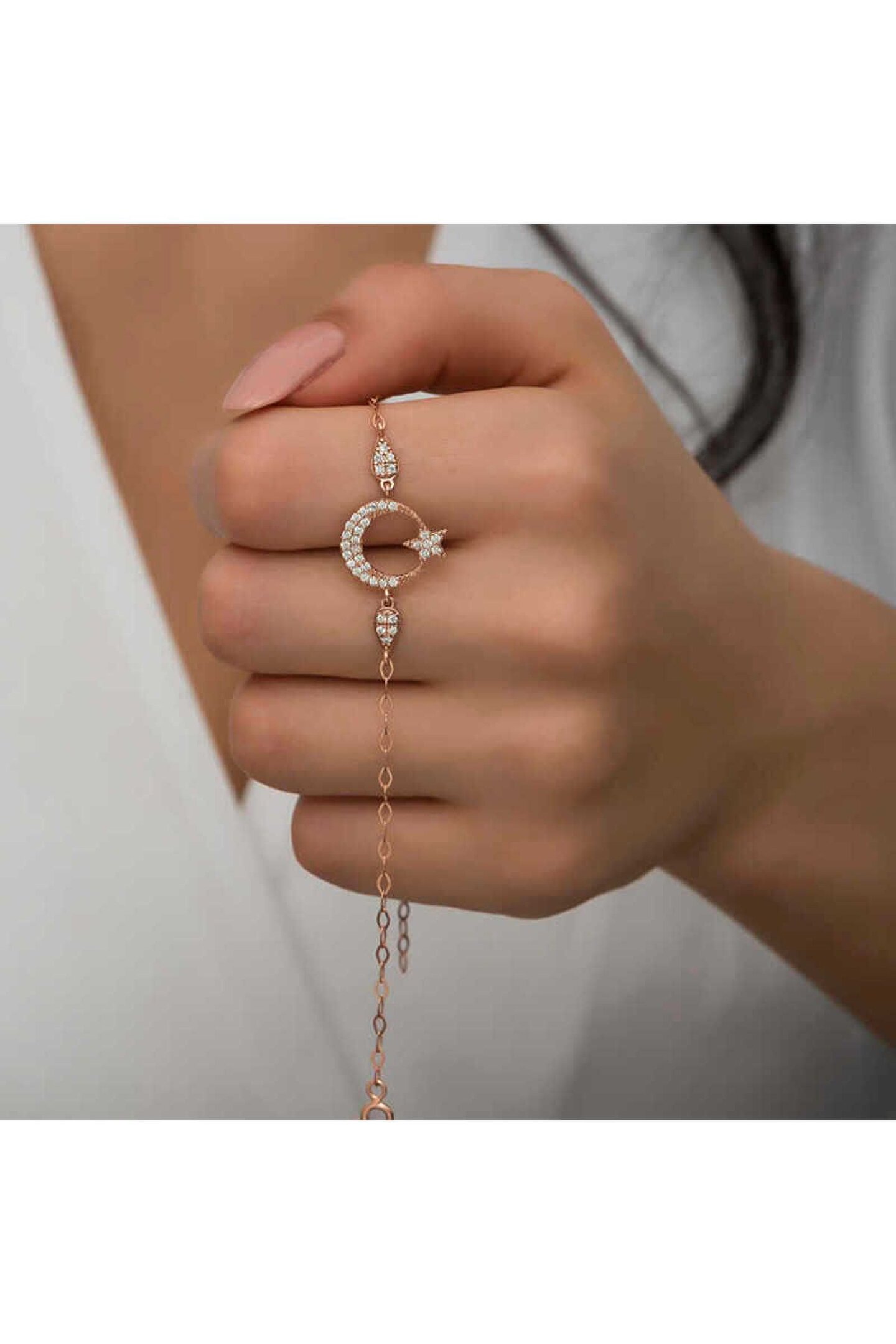 Samur Parti Parti Aksesuar & Kostüm 925 Ayar Gümüş Rose Ay Yıldız Kadın Bileklik