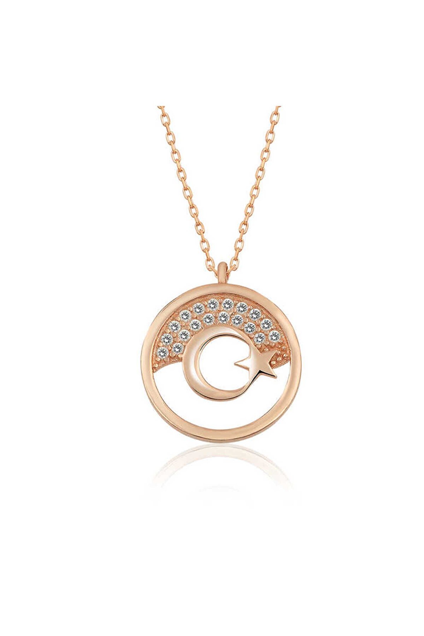Samur Parti Parti Aksesuar & Kostüm 925 Ayar Gümüş Rose Ay Yıldız Kadın Gümüş Kolye