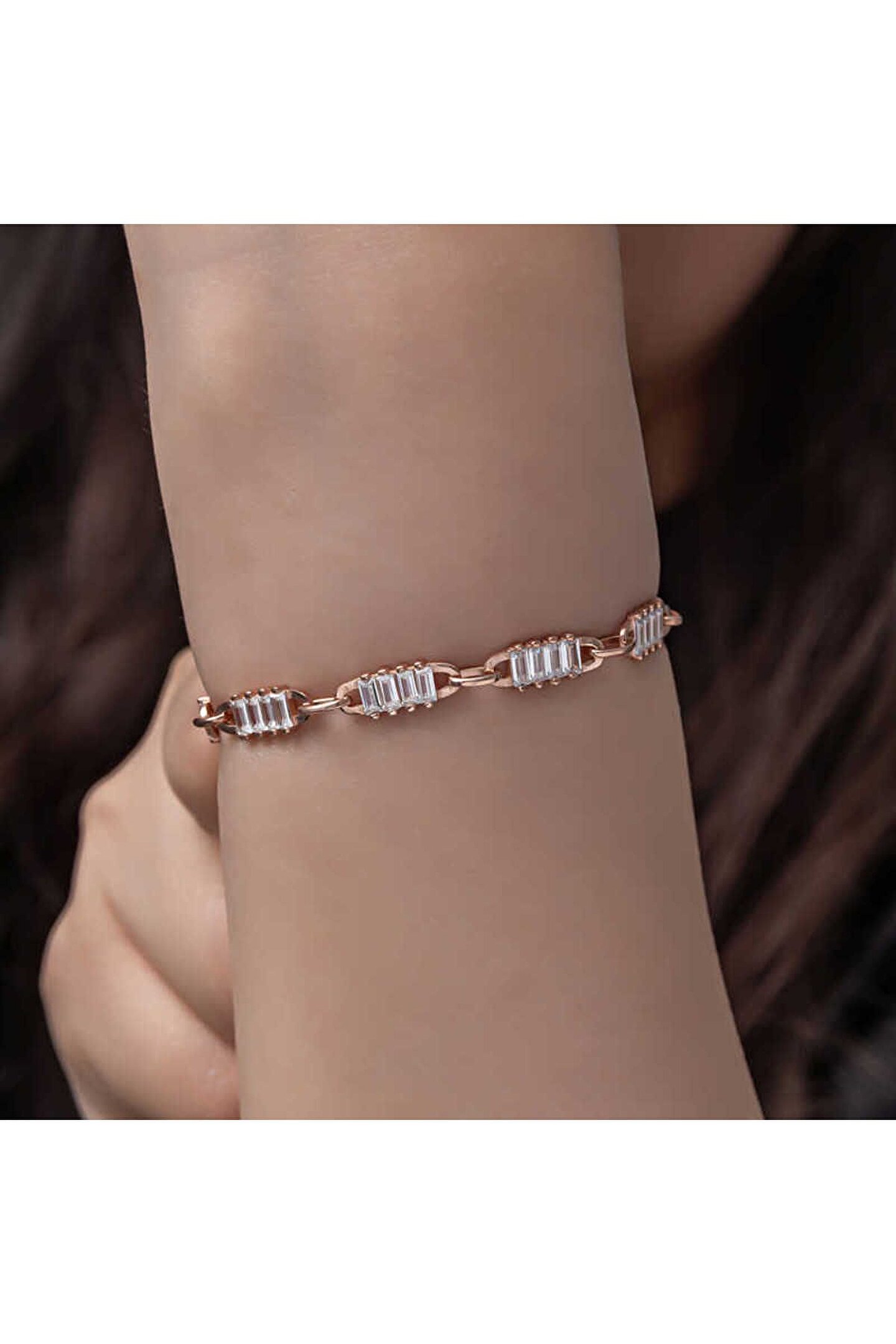 Samur Parti Parti Aksesuar & Kostüm 925 Ayar Gümüş Rose Baget Taşlı Kadın Bileklik