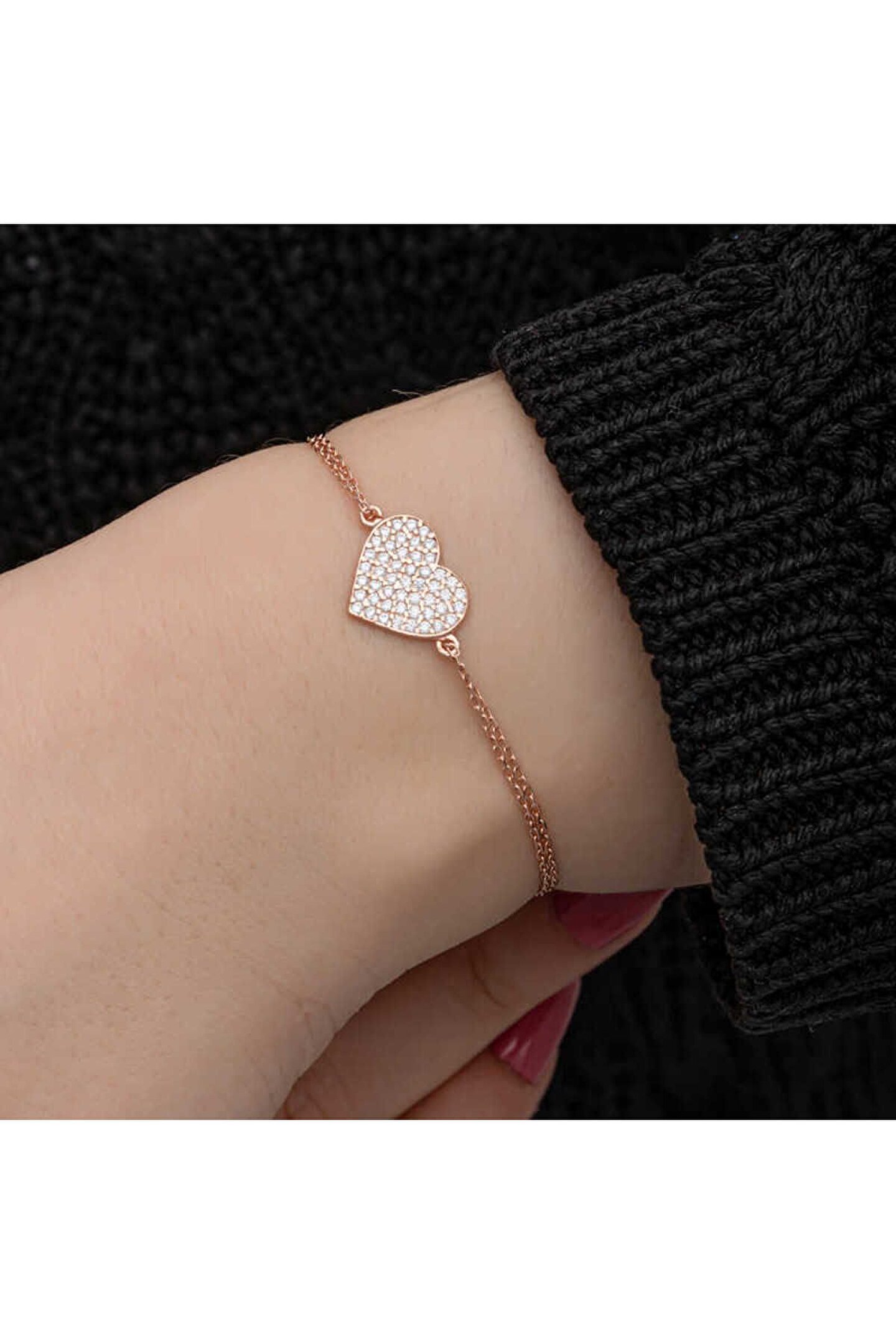 Samur Parti Parti Aksesuar & Kostüm 925 Ayar Gümüş Rose Kalp Kadın Bileklik