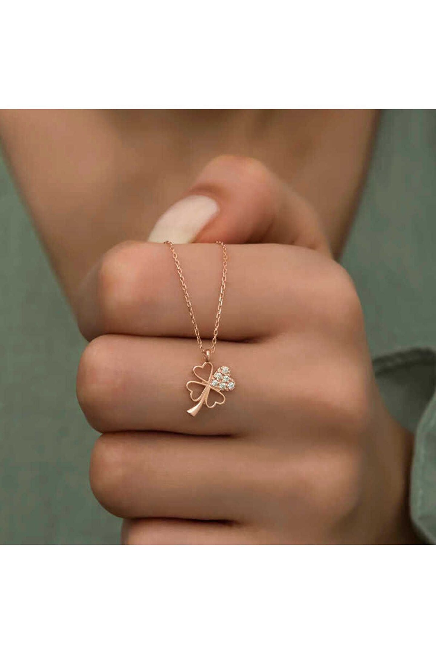 Samur Parti Parti Aksesuar & Kostüm 925 Ayar Gümüş Rose Kalpli Dört Yapraklı Yonca Kadın Gümüş Kolye