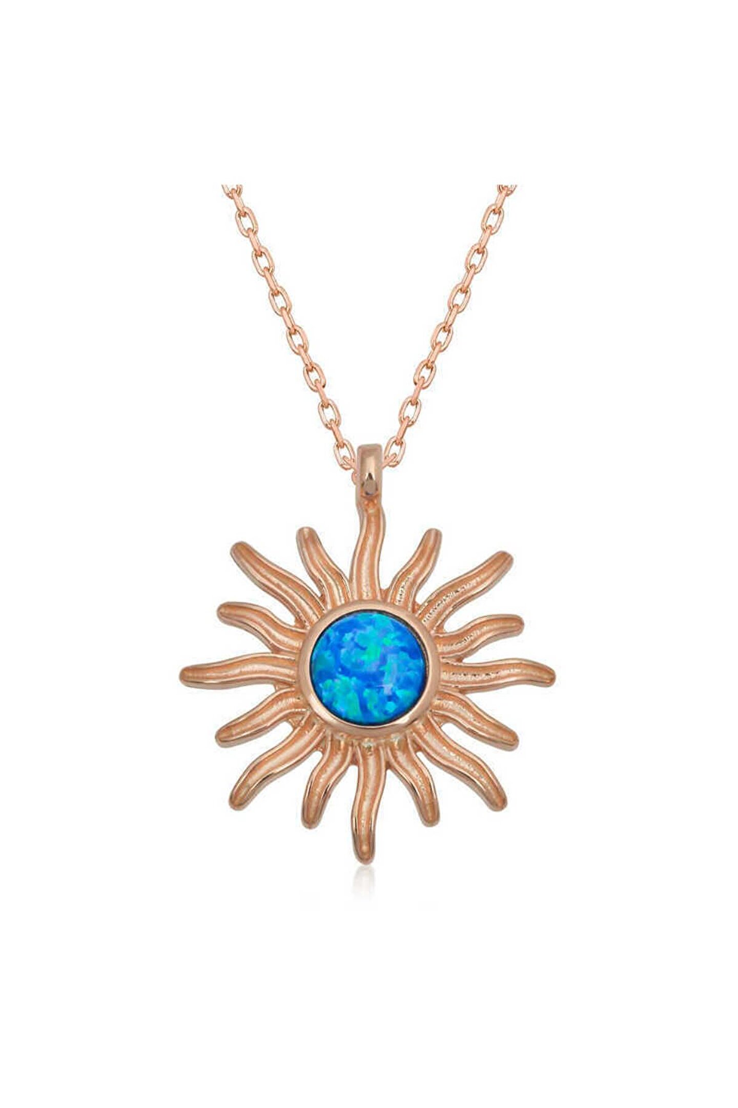 Samur Parti Parti Aksesuar & Kostüm 925 Ayar Gümüş Rose Mavi Opal Taşlı Güneş Kadın Kolye