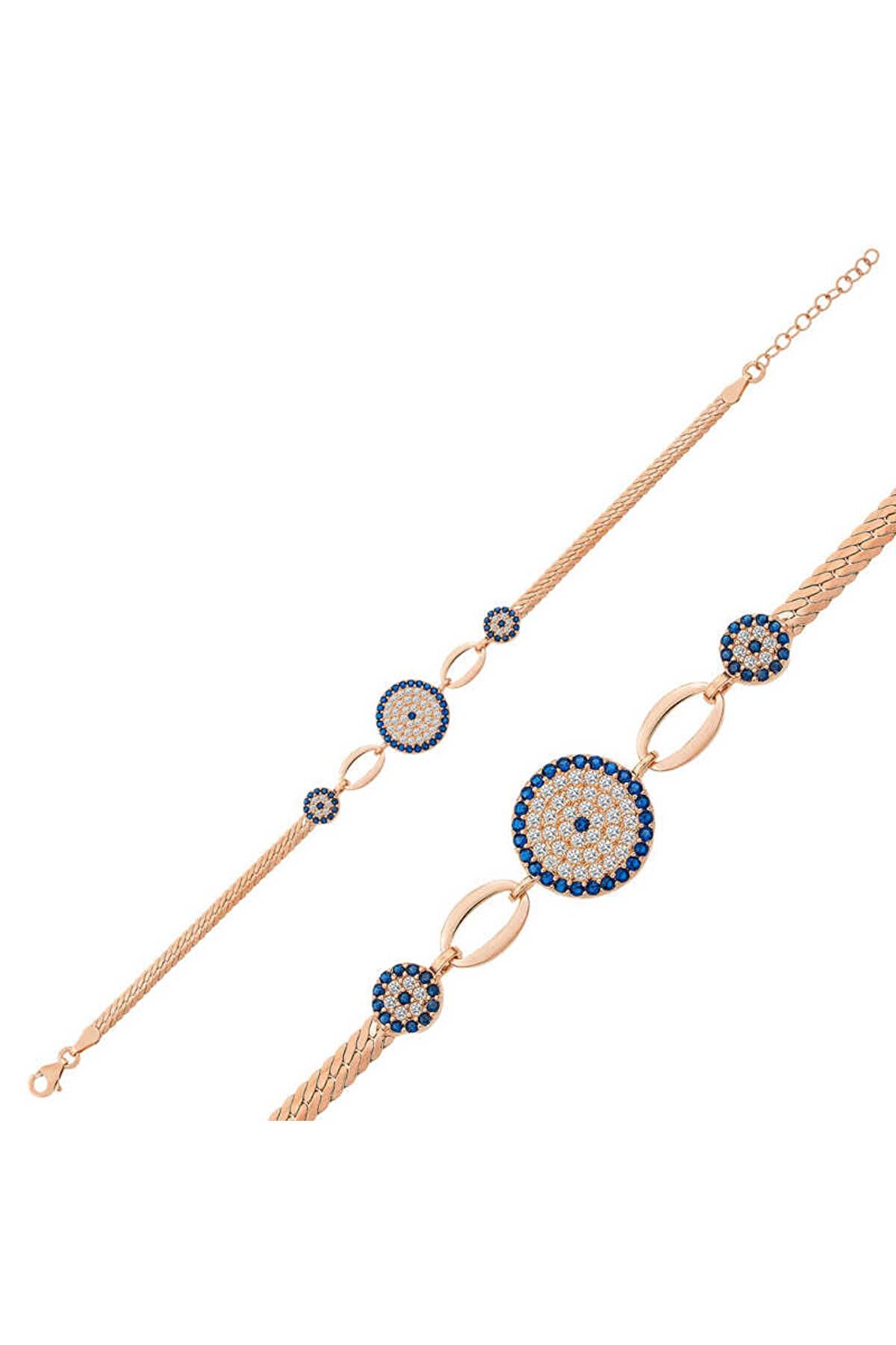 Samur Parti Parti Aksesuar & Kostüm 925 Ayar Gümüş Rose Nazar Boncuklu Bileklik