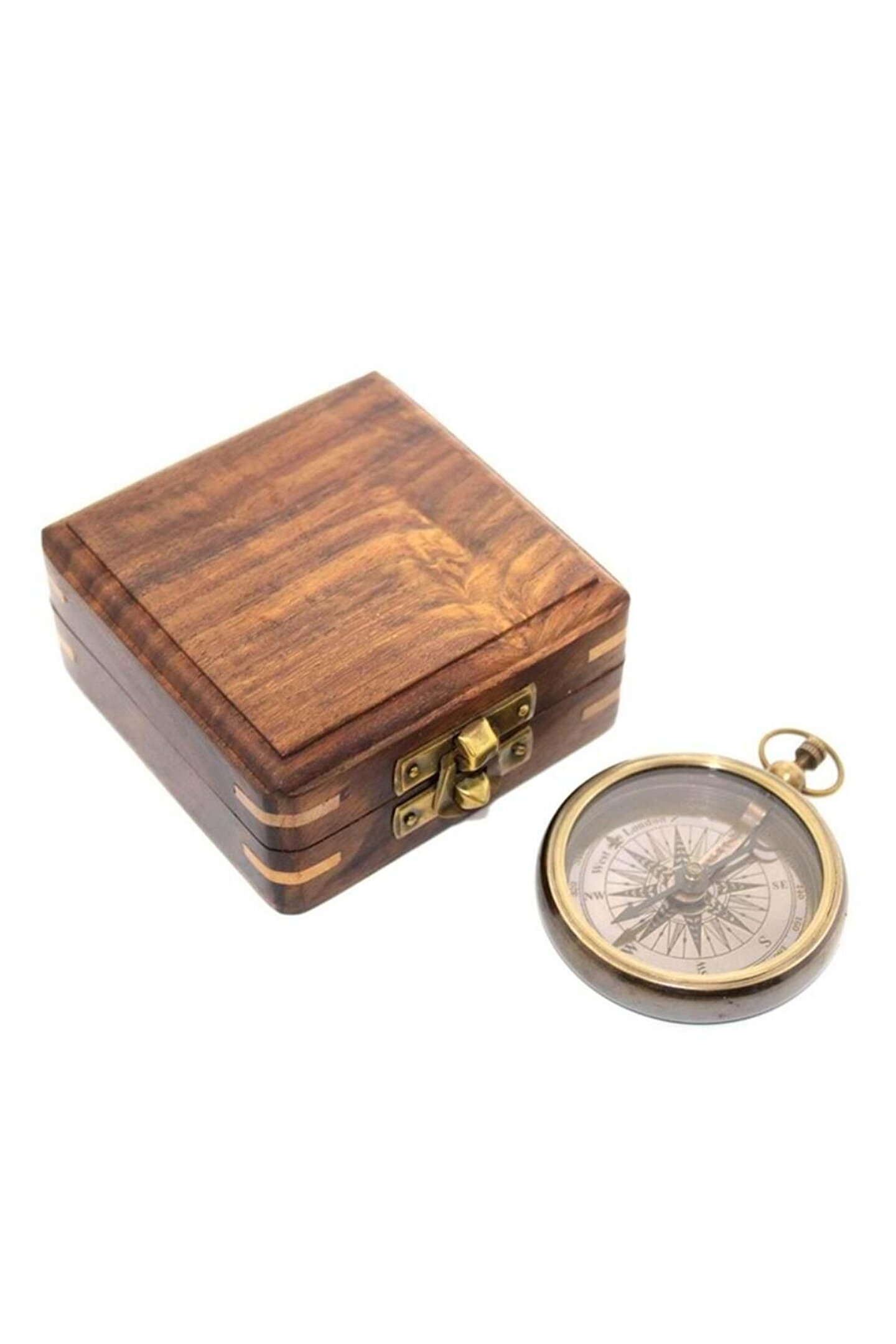 Samur Parti Parti Aksesuar & Kostüm Ahşap Kutulu Pirinç Pusula