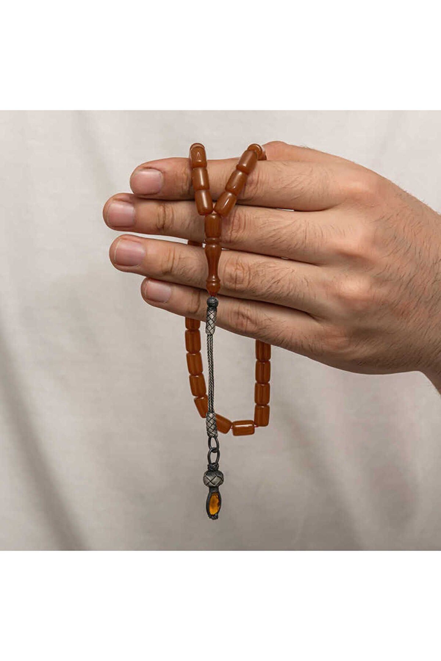 Samur Parti Parti Aksesuar & Kostüm Gümüş 1000 Ayar Kazaz Püsküllü Sıkma Kehribar Tesbih