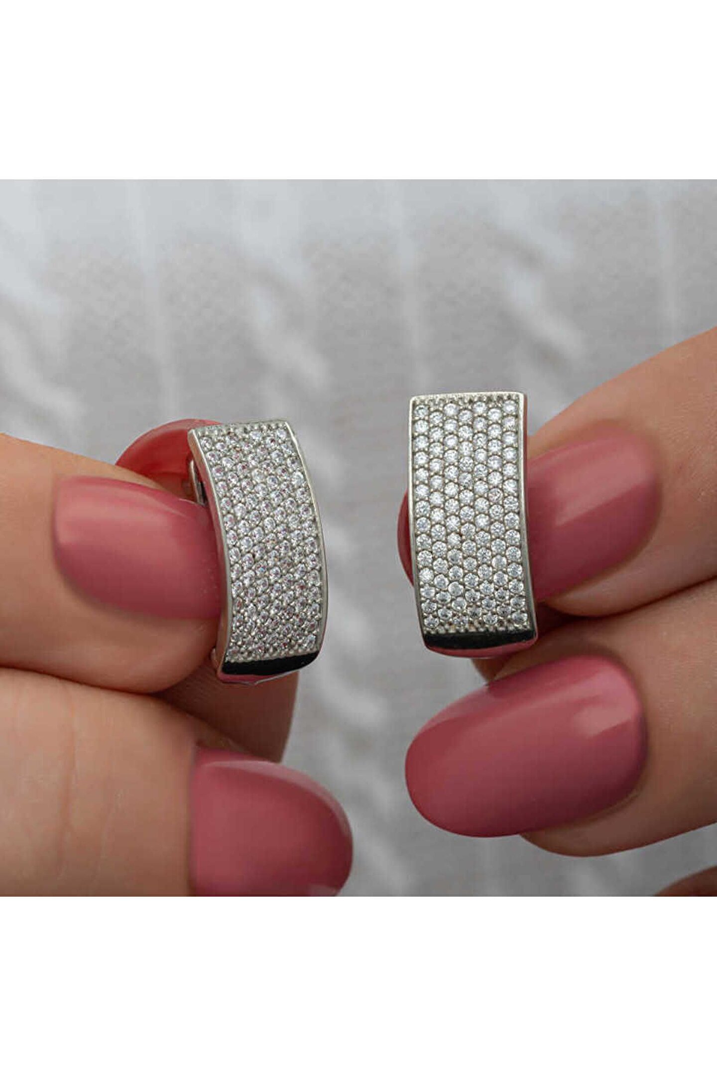 Samur Parti Parti Aksesuar & Kostüm Gümüş 7 Sıra Beyaz Taşlı J Kadın Küpe