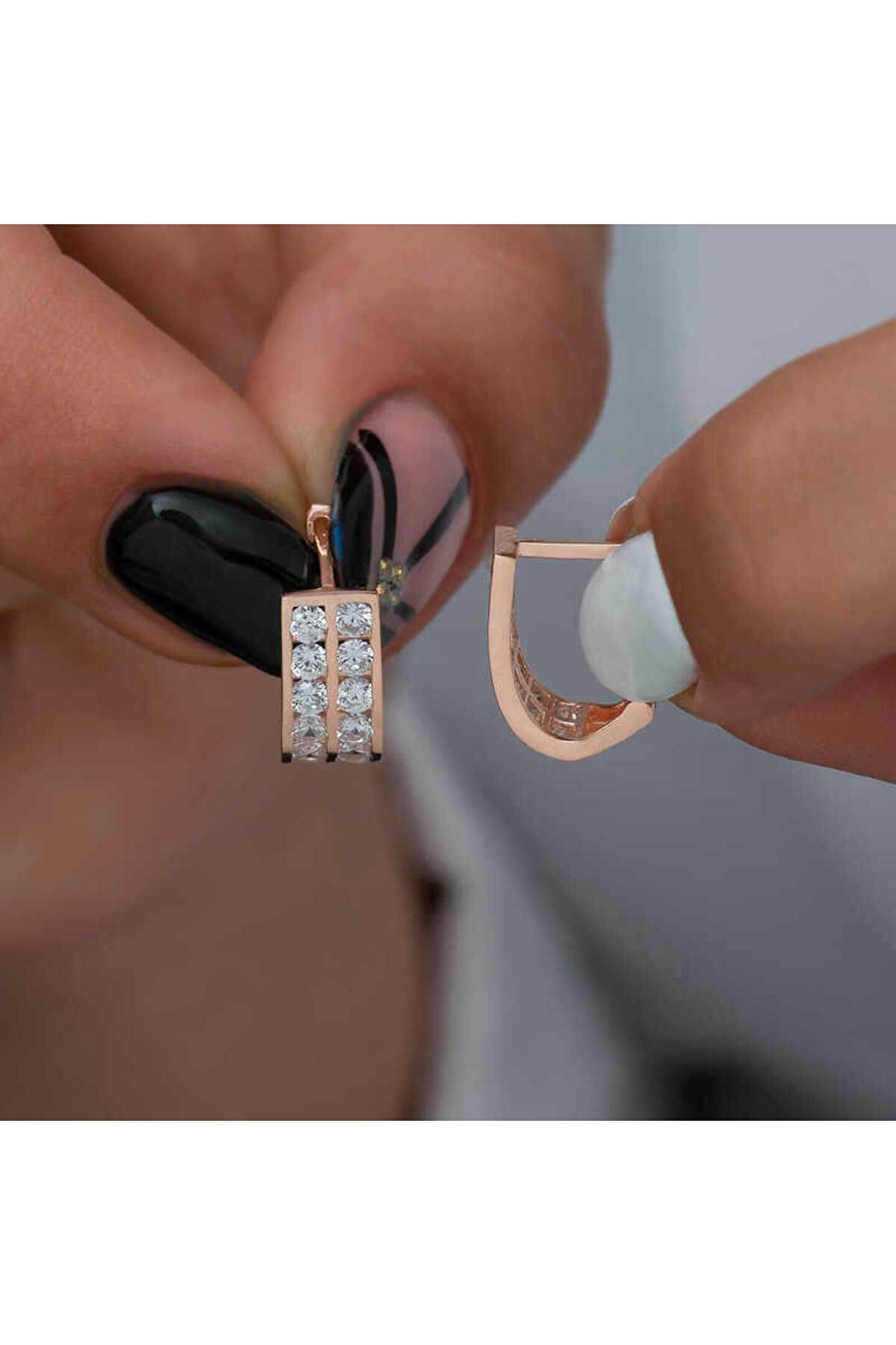 Samur Parti Parti Aksesuar & Kostüm Gümüş Çift Sıra Beyaz Taşlı J Kadın Küpe